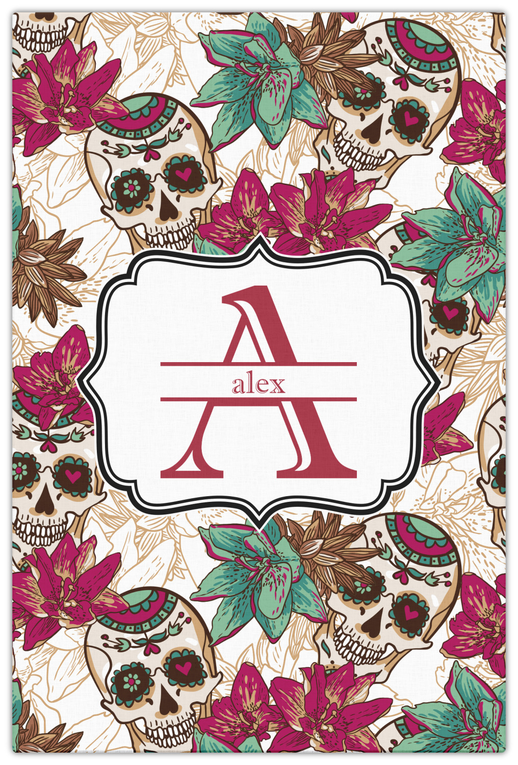 Amidst the flowers and smiling skulls, a label rests in the center, the perfect place for the personalization of your choice.