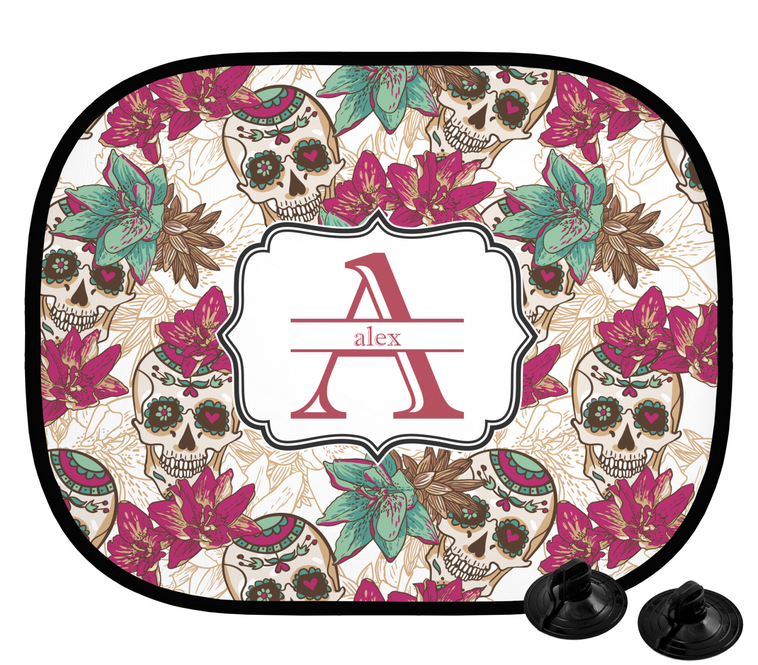 Our custom car sun shade is fabricated from a polyester netting that manages to block out most harsh rays, while still allowing some light to come through. A metal ring encircles the polyester netting, which grants durability and stiffness to the shade. We print your personalized design on the entire surface of the product. Two black suction cups accompany this product; the pair clip onto either side of the shade and allows for easy attachment and removal. Each shade measures at 17.25" x 14.25". We suggest that you measure the side windows of your car to ensure that this car window shade is a proper fit.