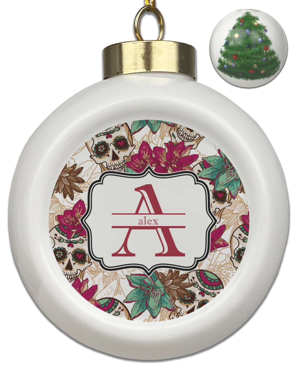 Our Christmas ornaments are a unique ceramic ball shape with a twist as it has a flat face to display your custom design! Select from one of our two design types - Christmas Tree or Poinsettia Garland - to adorn the curved back of your personal design. Each ornament measures 3H x 2.5W x 2D accompanied with a gold string accent for finishing touches to hang on your beautiful Christmas tree!