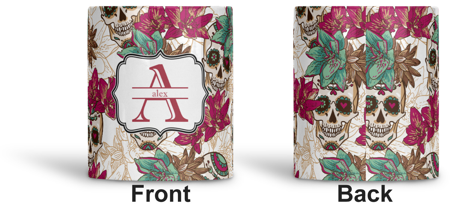 Amidst the flowers and smiling skulls, a label rests in the center, the perfect place for the personalization of your choice.