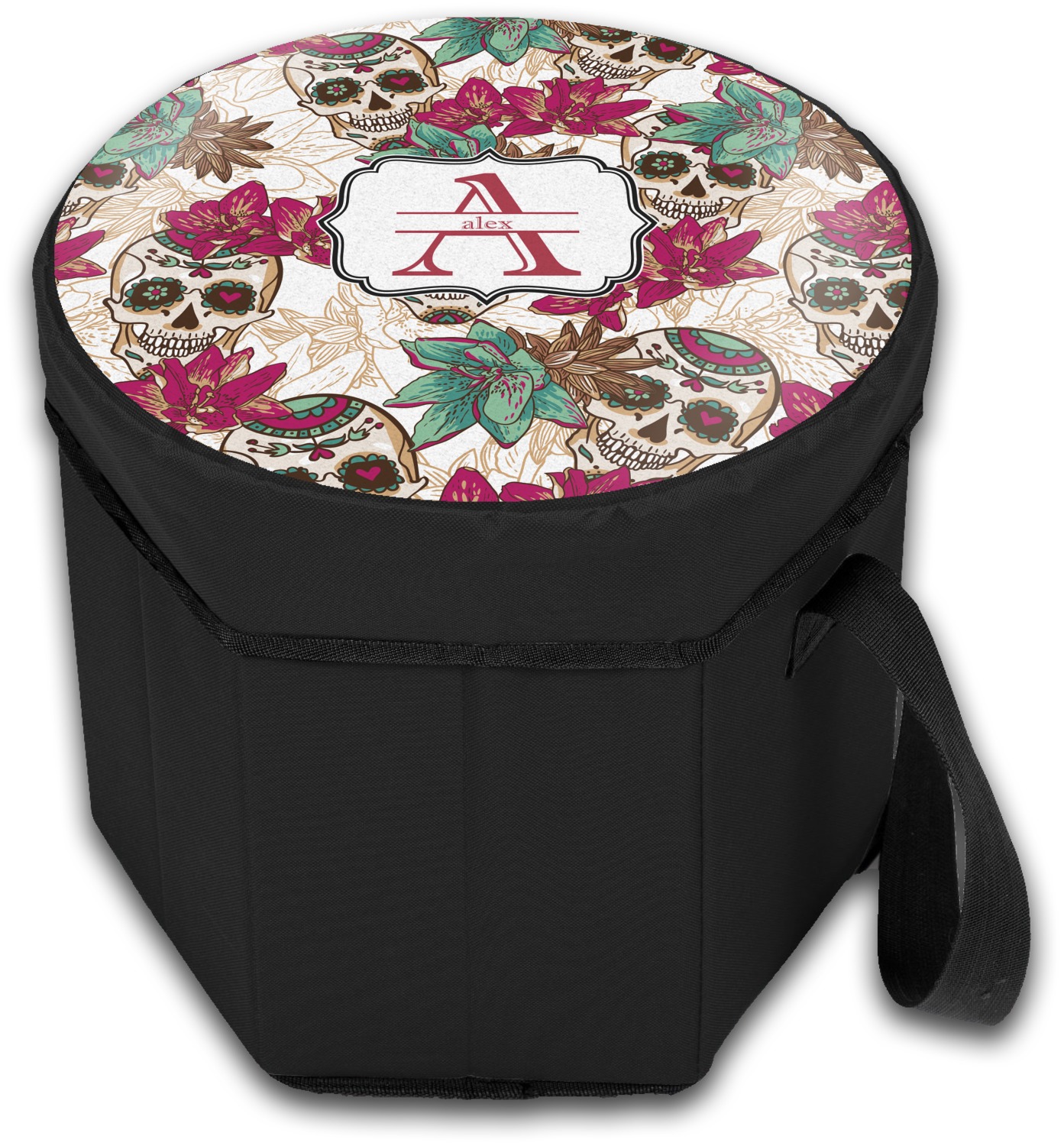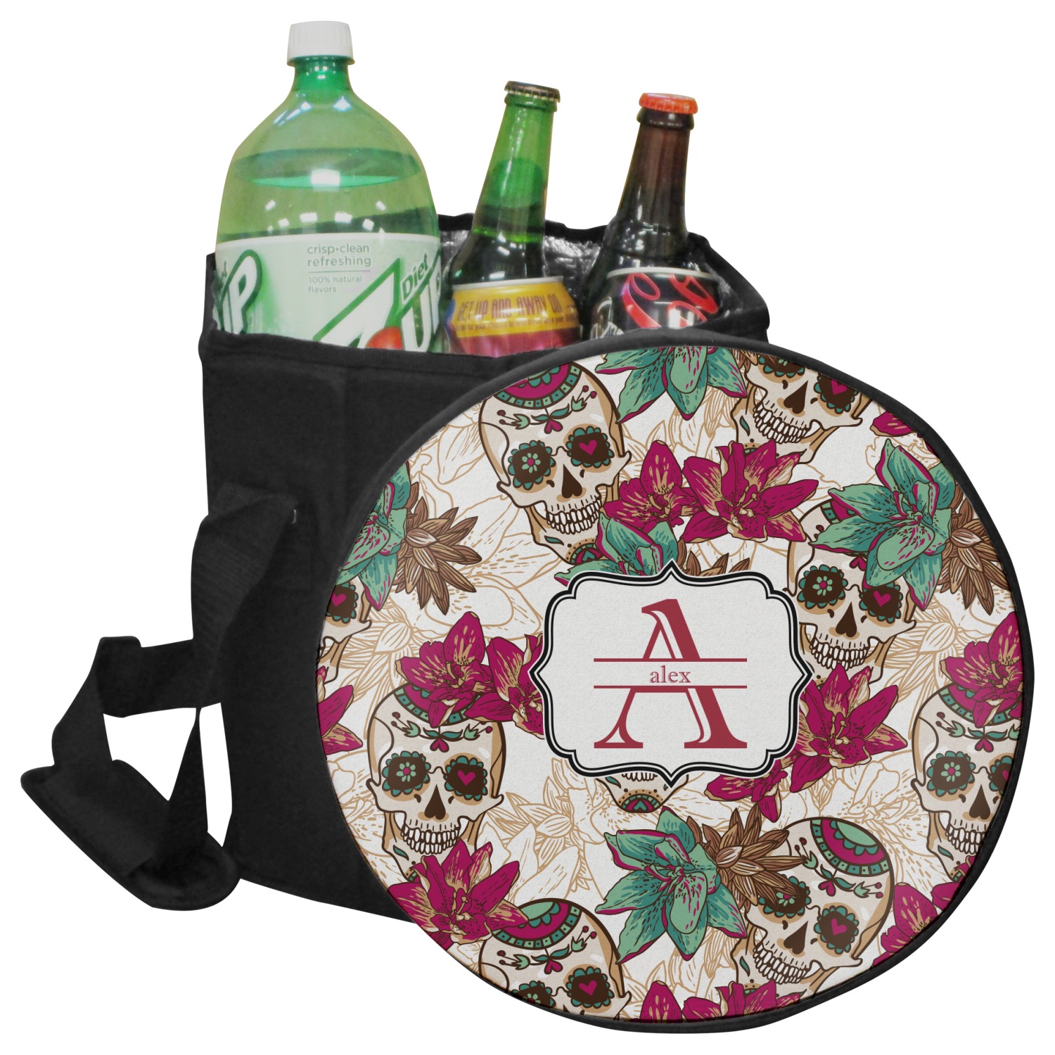 Our collapsible insulated coolers feature a unique six-sided hexagon shape, are lightweight, durable and can be turned into a seat. This cooler is fully insulated with silver foil lining to keep food and drinks hot or cold, and has a 12-quart capacity. Although this cooler collapses for easy transport, hidden inside are composition panels made of sturdy wood that give the frame strength and allow this cooler to be used as a seat. Simply sit down on the personalized cover and give your legs a break! (Maximum weight capacity of 200 pounds.)