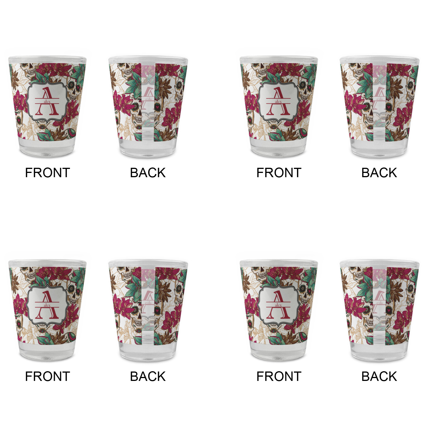 Made with frosted glass, these shot glasses are printed in full color with the design of your choice. They are a standard 1.5oz shot glass and are 2.4" tall. The print is wrapped around the shot glass in a full wrap and boldly displays your customization.
