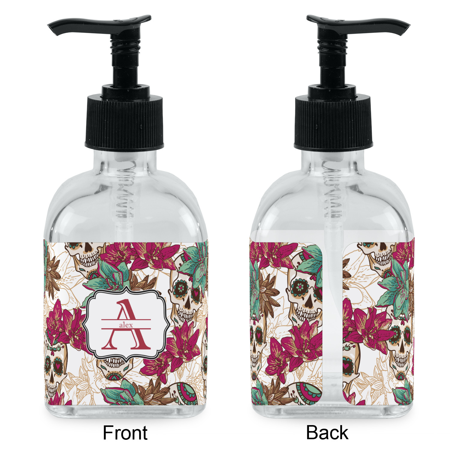 Crafted from a high-quality glass, these soap dispensers and lotion dispensers are durable and robust, while still looking elegant. They are sold with black pumps. Each soap dispenser pump measures at 6.5 by 2.25 inches. On these soap pumps, we display your customized design on a personalized vinyl adhesive on three sides. That way, you can judge how much liquid is in the bottles from the back.