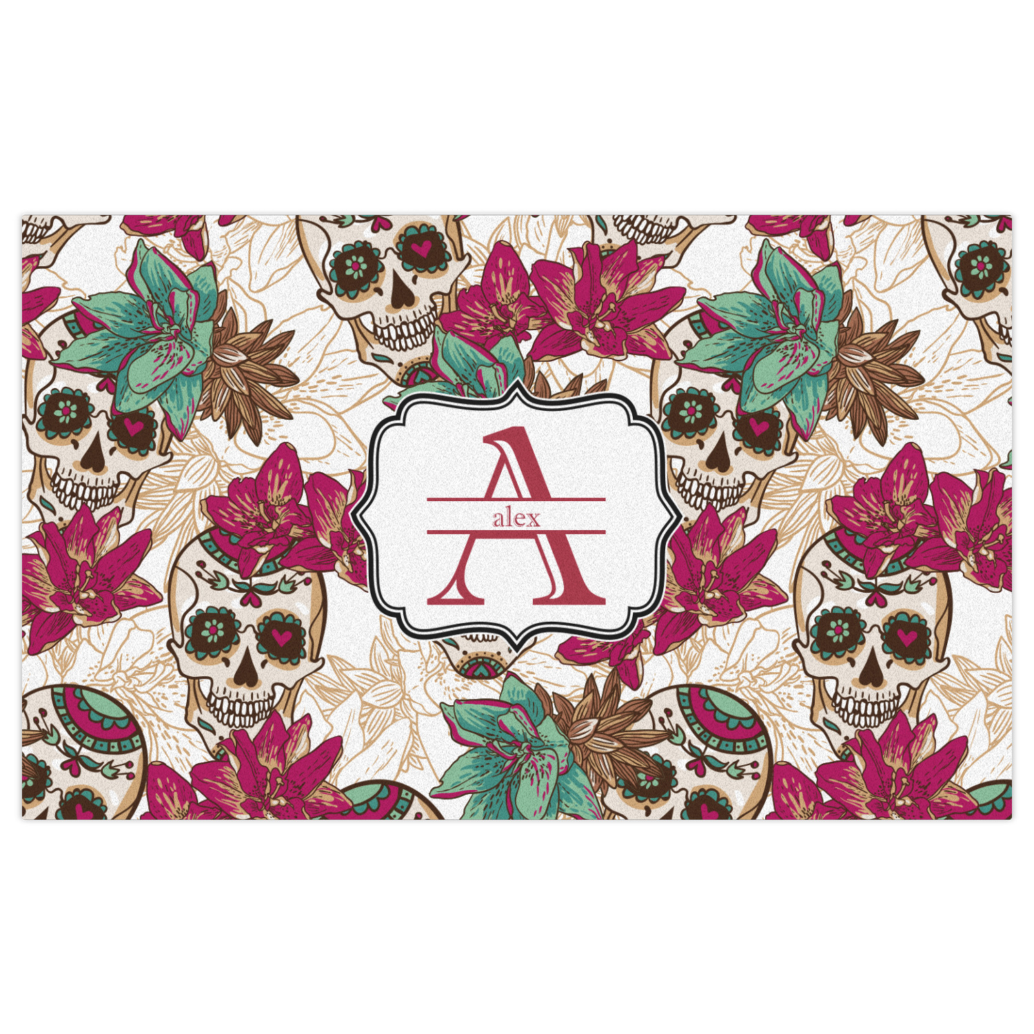 Amidst the flowers and smiling skulls, a label rests in the center, the perfect place for the personalization of your choice.
