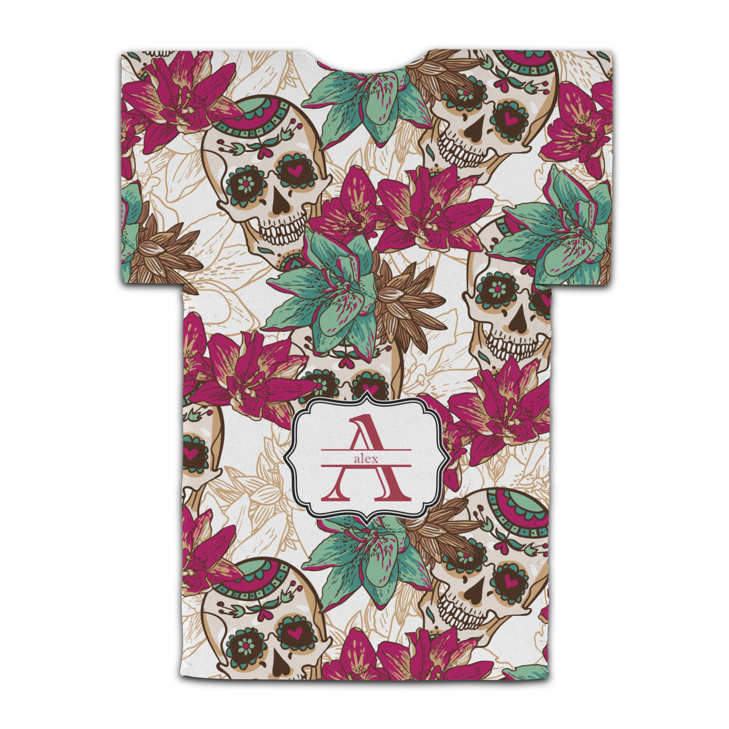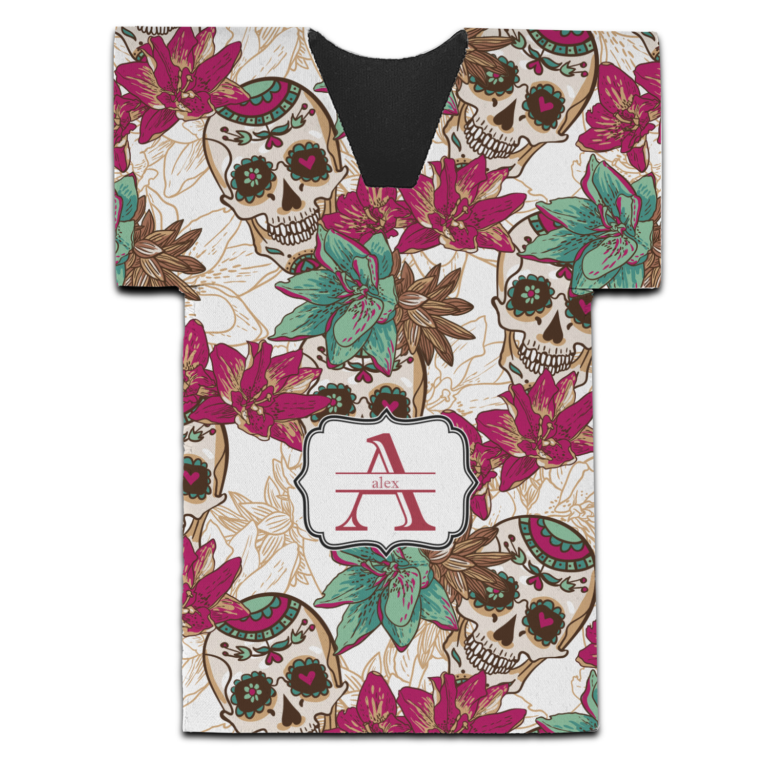 Amidst the flowers and smiling skulls, a label rests in the center, the perfect place for the personalization of your choice.