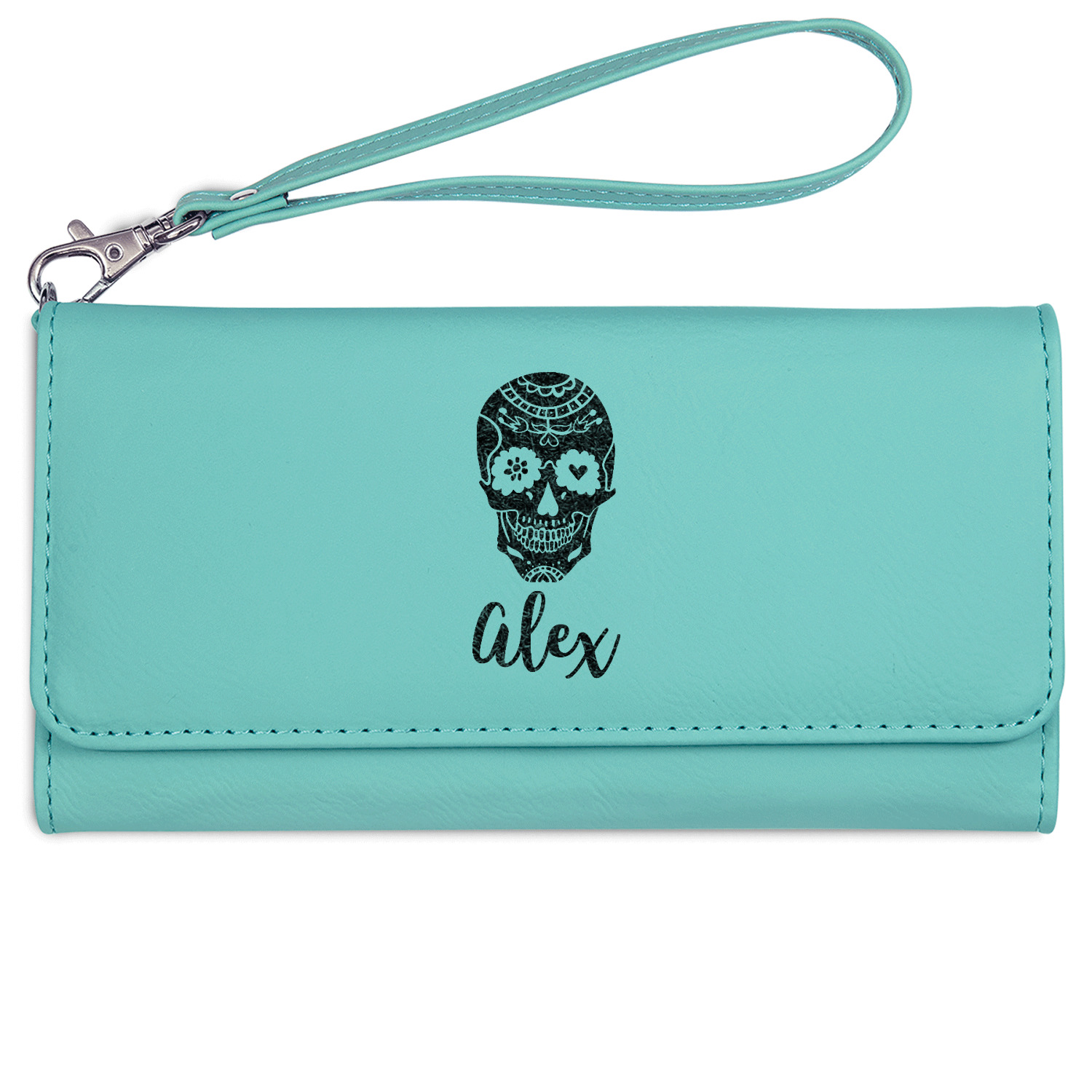 These personalized ladies leather wallets are available in 2 colors - rawhide / cognac and teal.