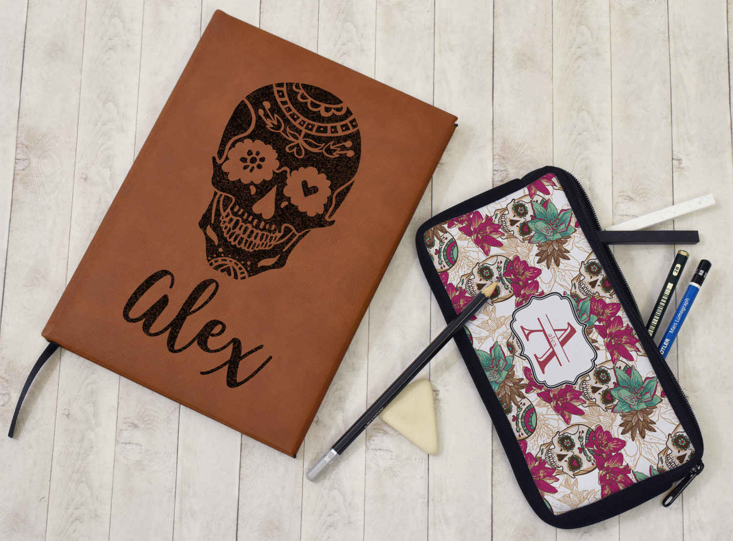 The faux leather covers are a rich cognac / rawhide color and can be customized with your design. From a simple name or monogram or a logo to a detailed mandala - the choice for customization & personalization is truly yours. Customize one of our designs or upload your own.