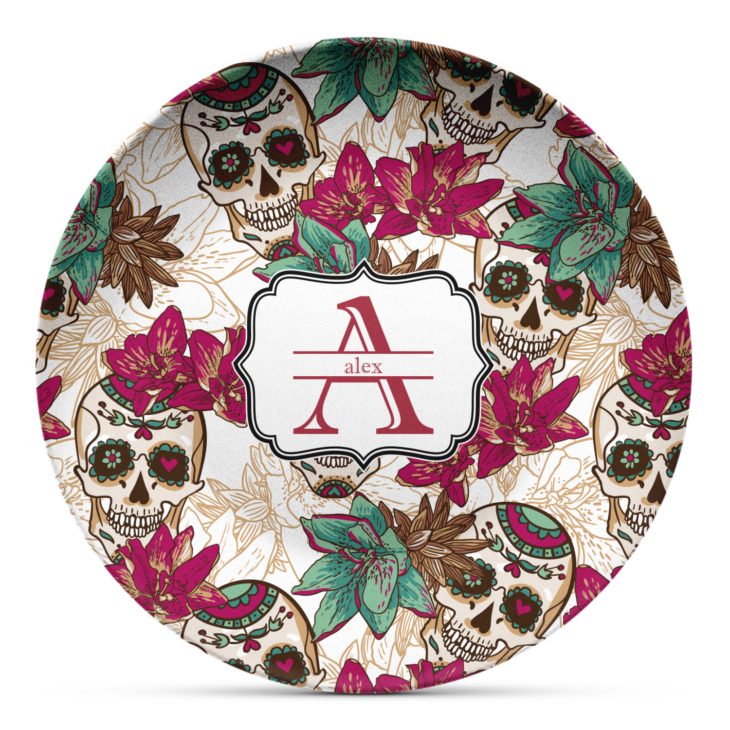 These plastic plates have the versatility, durability, and weight of melamine plates but are instead are made from a melamine-free composite, thermo-set, polymer plastic. These plates are made right here, in the USA, without the use of harmful chemicals, such as BPAs, formaldehyde, or DEHPs. Our elegant plastic plates can even withstand temperatures of up to 250 degrees Fahrenheit, for up to 60 minutes. The entire face of the plate exhibits your personalization in bright, vibrant color, and the plate's diameter measures at 10" long.