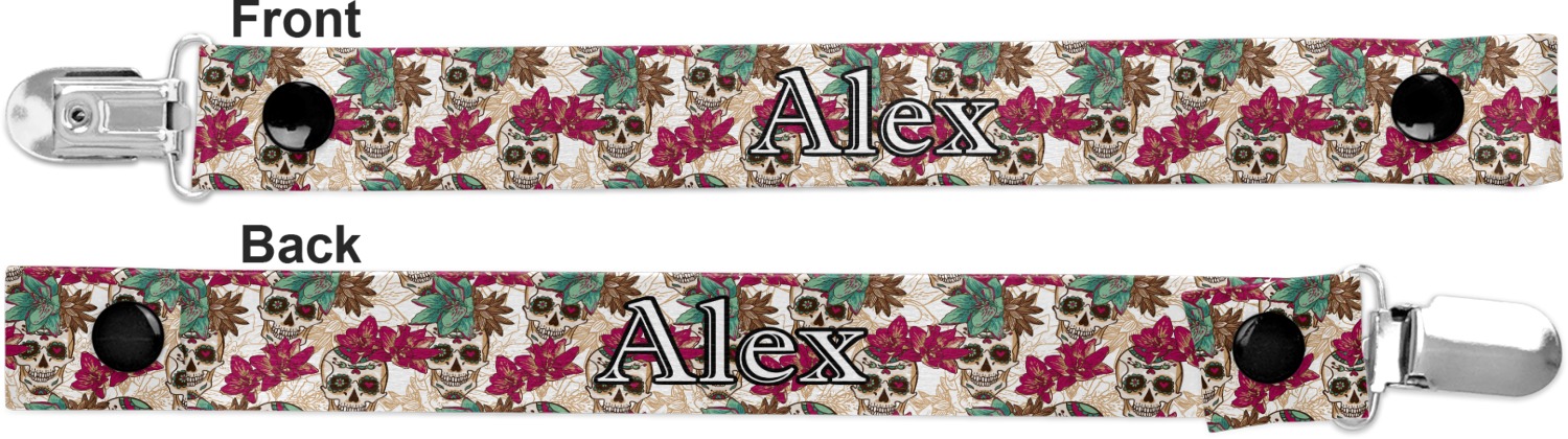 This personalized pacifier clip is the ideal size and measures at approximately 7.5 inches in length, when either end is snapped closed. On one end, you'll find a snap button. This button of your baby's pacifier holder is what can be attached to their pacifier to hold is securely in place. Simply open the snap, slip it through the pacifier opening, and snap it back into place. On the opposite end of this baby pacifier holder, you'll find a metal clip that can secure to a baby's collar or sleeve. This clip ensures that the strap stays in place, and that your baby's pacifier is always on hand.