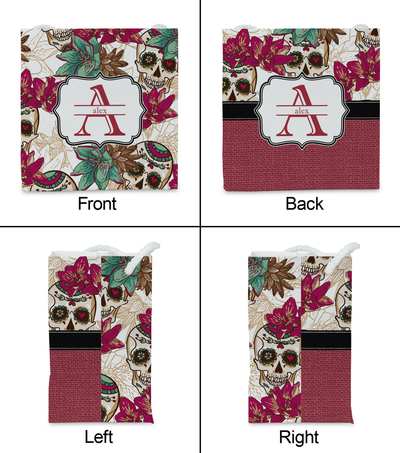 Amidst the flowers and smiling skulls, a label rests in the center, the perfect place for the personalization of your choice.