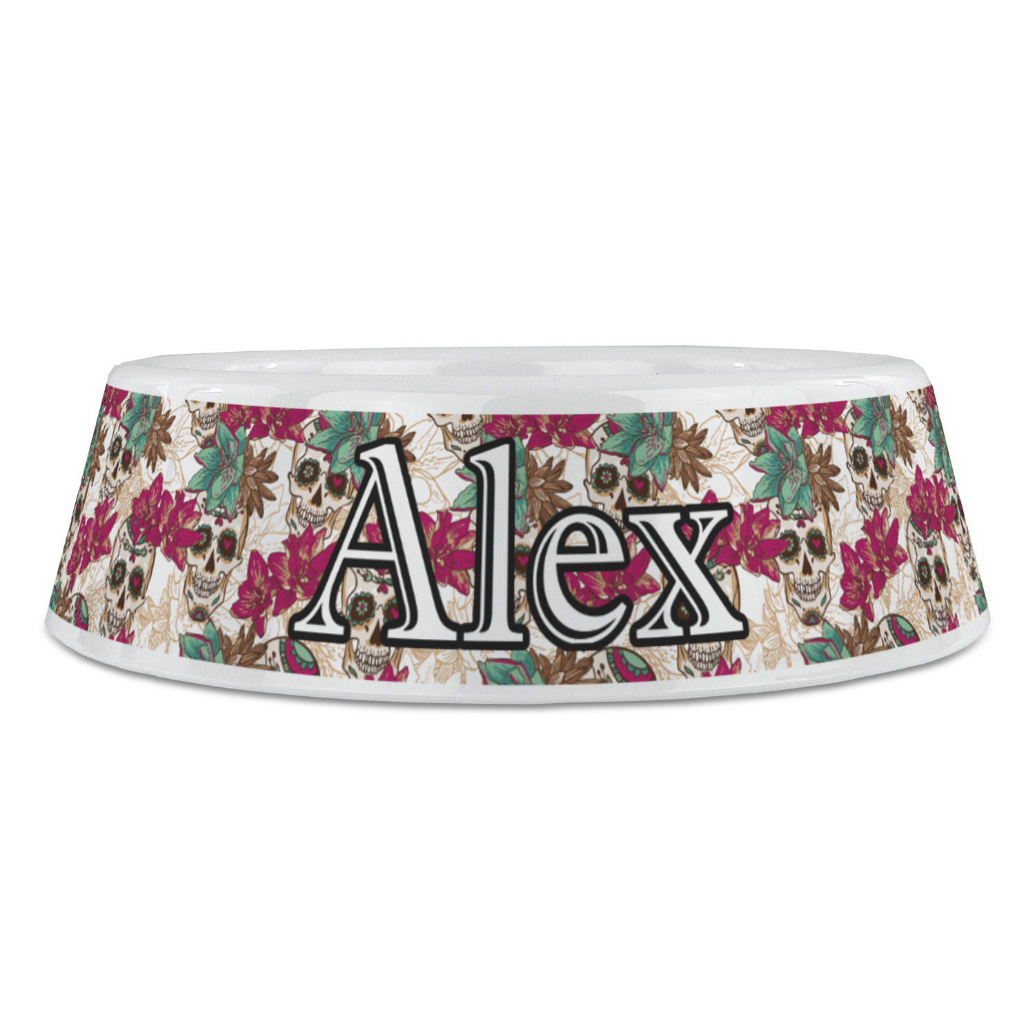 Amidst the flowers and smiling skulls, a label rests in the center, the perfect place for the personalization of your choice.
