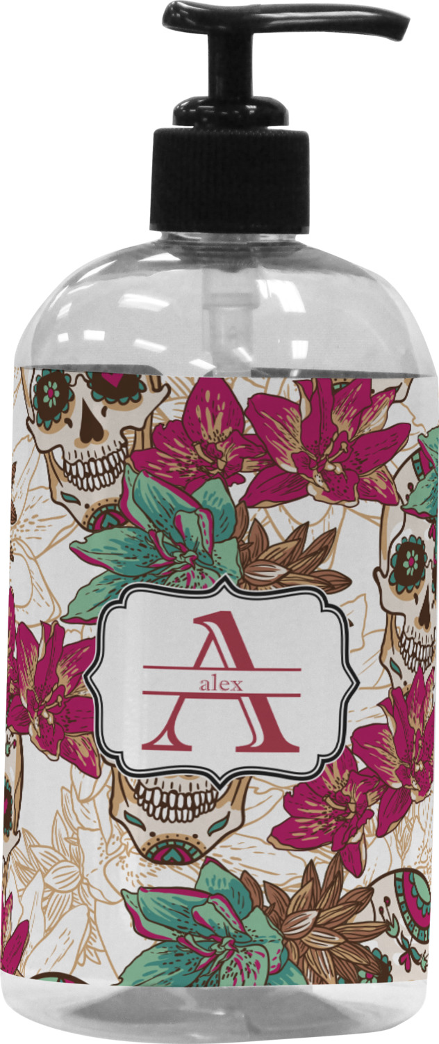 Amidst the flowers and smiling skulls, a label rests in the center, the perfect place for the personalization of your choice.