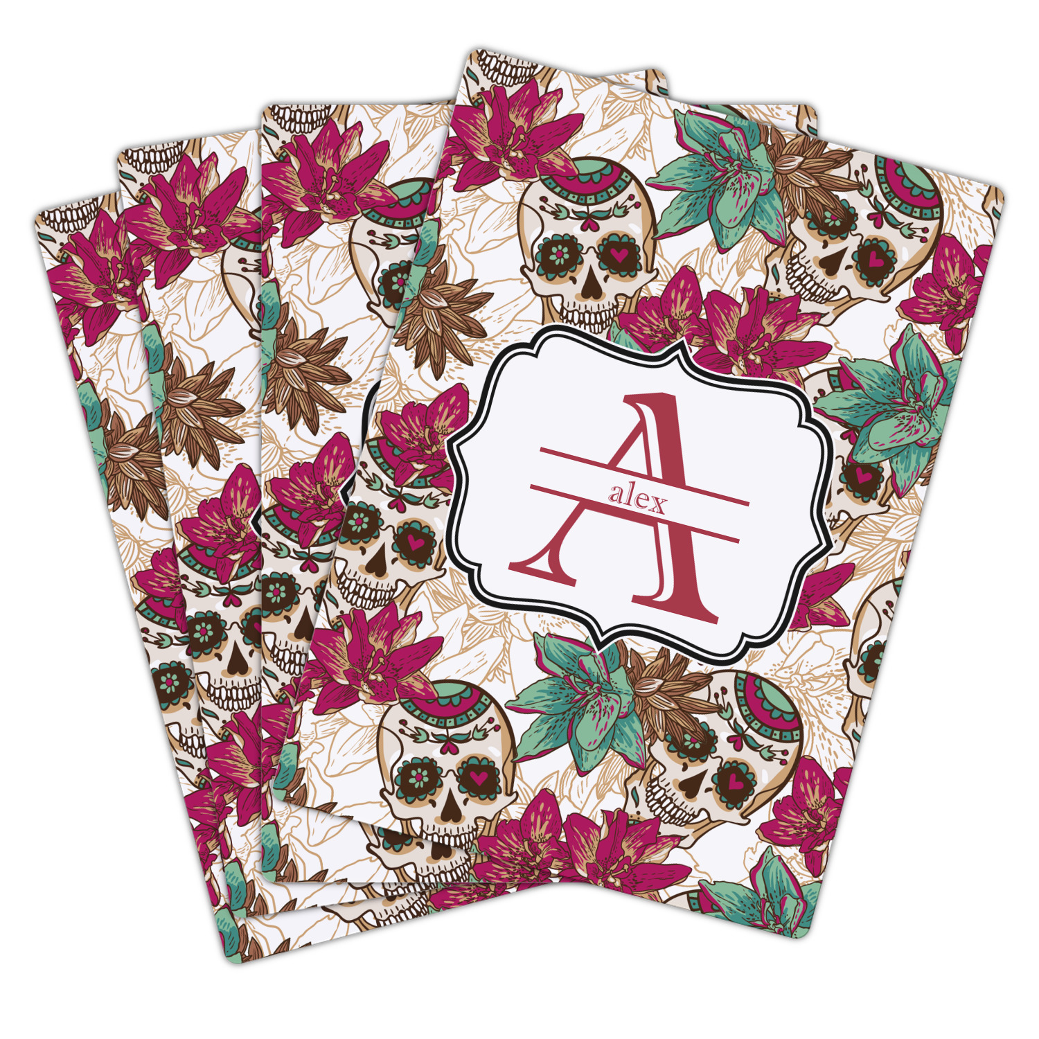Amidst the flowers and smiling skulls, a label rests in the center, the perfect place for the personalization of your choice.