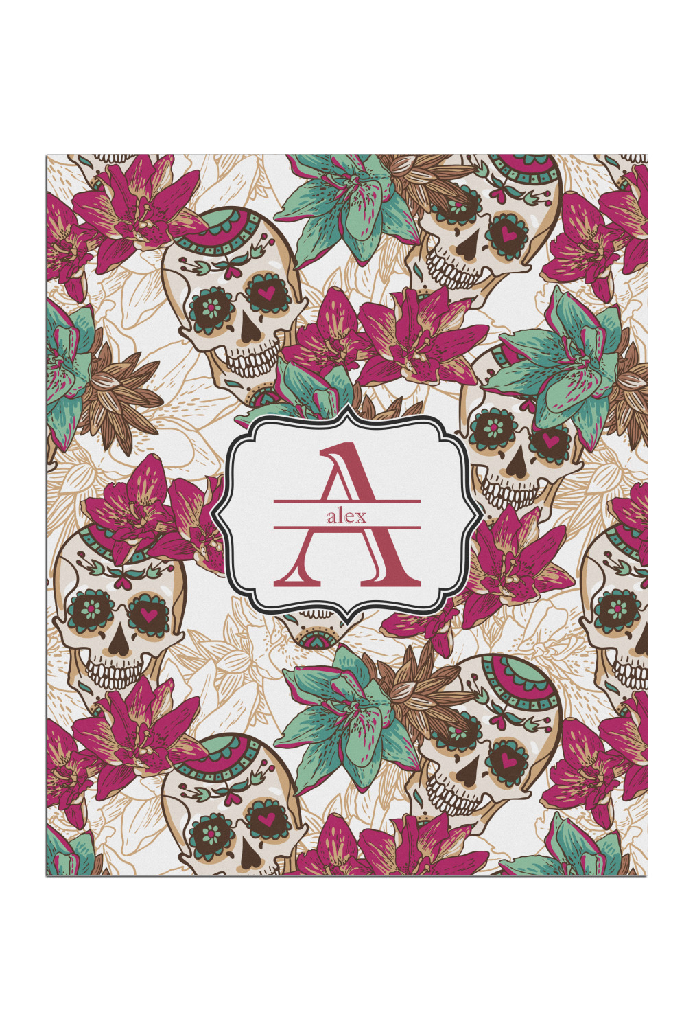 This design is full of sugar, spice, and everything nice, featuring the traditional Mexican Sugar Skulls. The calaveras, the official name of the sugar skulls, in this design are whimsical with flowers and hearts in the eye-sockets in lovely teal and magenta colors.
