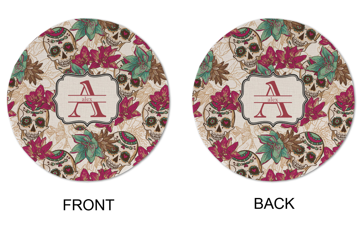 Amidst the flowers and smiling skulls, a label rests in the center, the perfect place for the personalization of your choice.