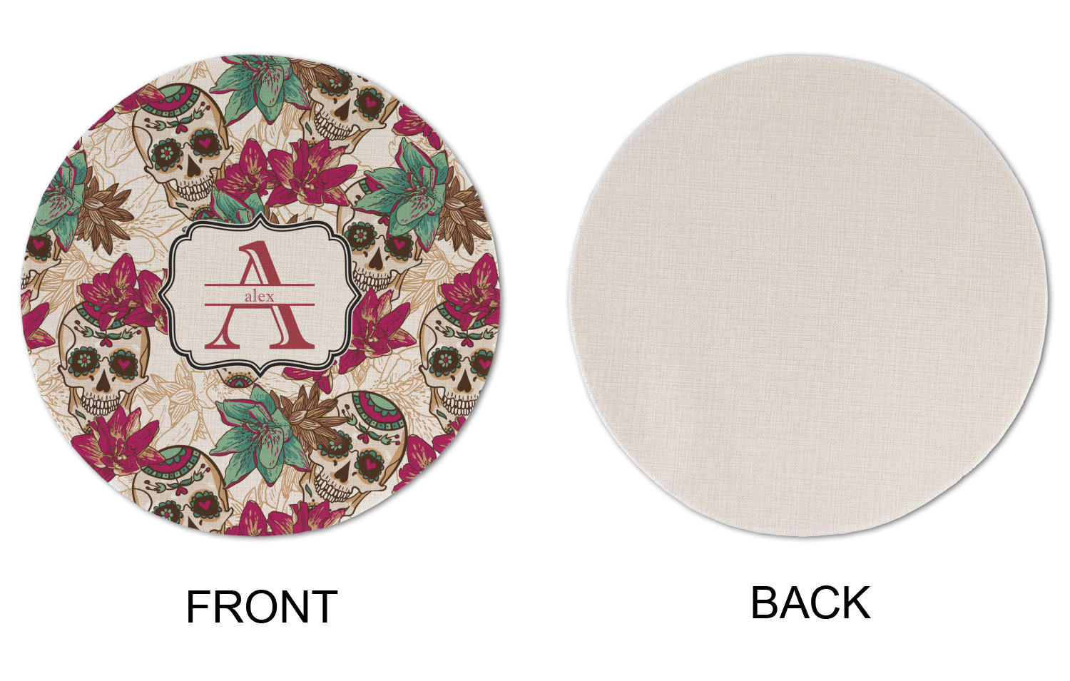 Amidst the flowers and smiling skulls, a label rests in the center, the perfect place for the personalization of your choice.