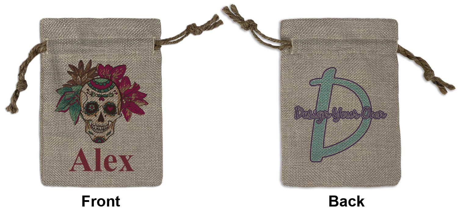 We sell our Burlap Gift Bags in 3 variant sized bags. Made with burlap polyester, each personalized bag can be secured with a twine drawstring pull. Your custom design is available to print on one side or both sides - completely up to you! The sizes of the bags measure approximately 4.5" x 6.5" for the smallest size, 6.5" x 8.0" for the medium size, and 6.5" x 13.5" for the large-sized bag.
