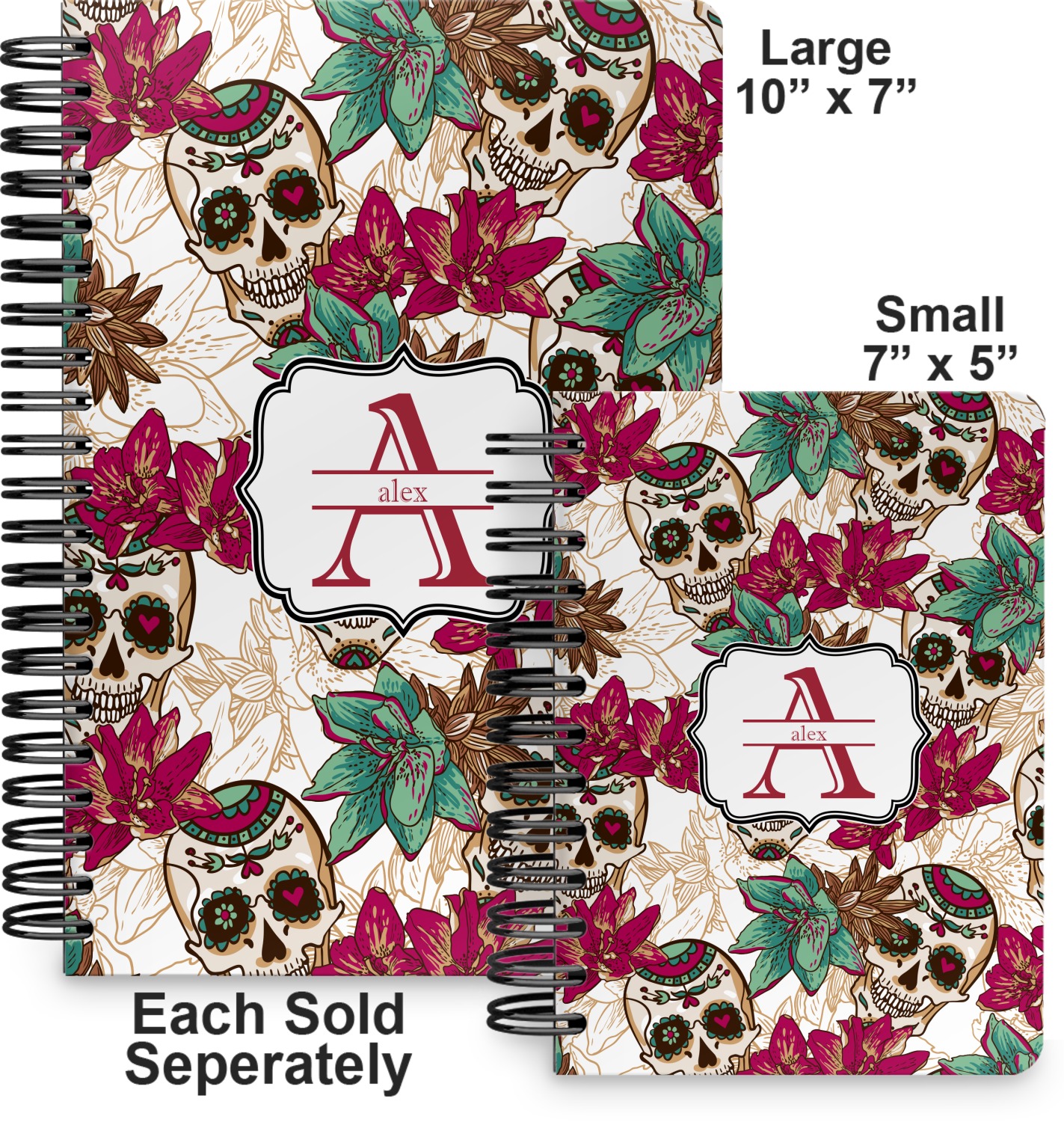 This spiral journal is available in two sizes. The first size is more suitable for a tote or purse and measures at 7" x 5". The second option is a bit larger, at 10" x 7", and is a better fit for a briefcase or backpack.