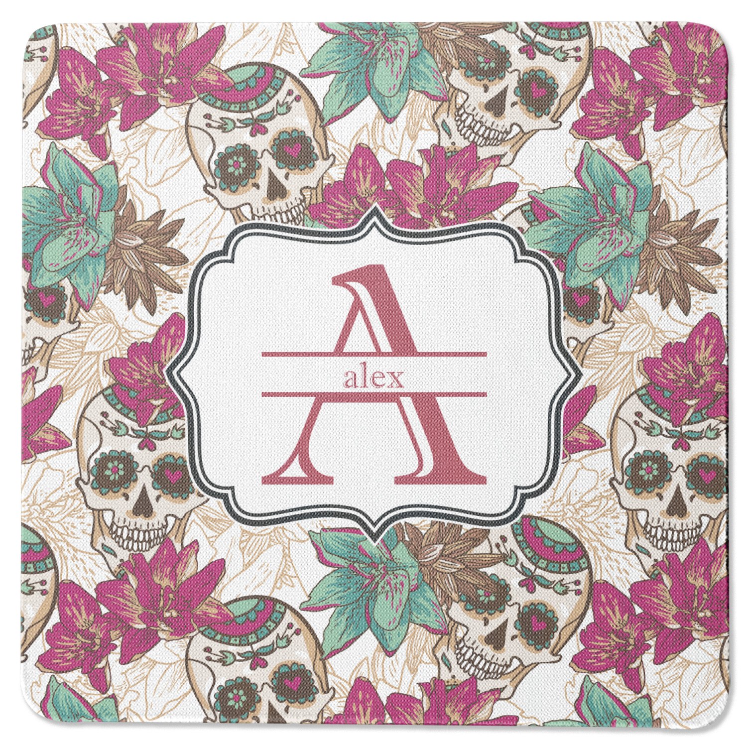 This design is full of sugar, spice, and everything nice, featuring the traditional Mexican Sugar Skulls. The calaveras, the official name of the sugar skulls, in this design are whimsical with flowers and hearts in the eye-sockets in lovely teal and magenta colors.
