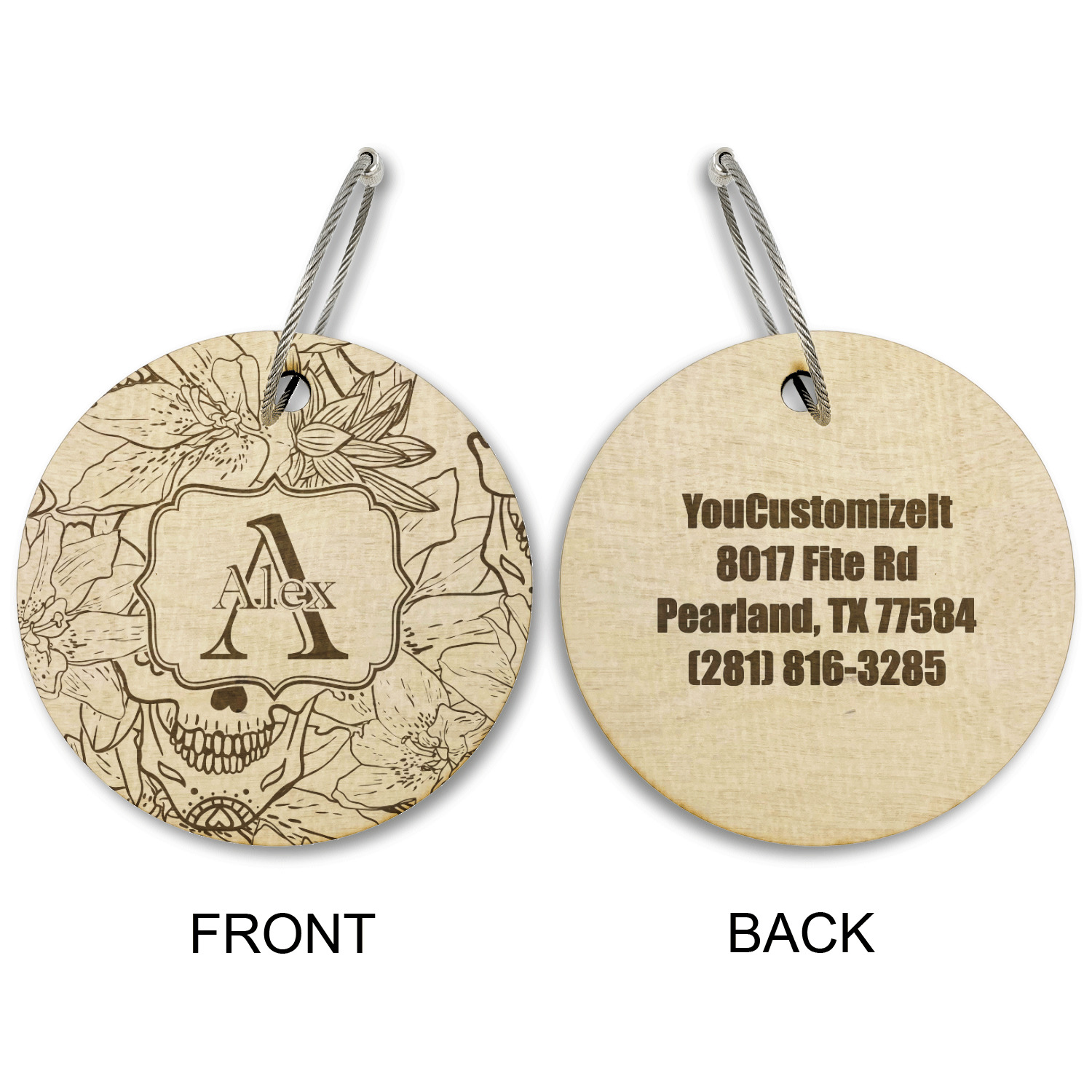Made from a premium hardwood, these luggage tags are laser engraved and cut just for you. The front contains your design of choice and the back has your contact information to ensure your luggage gets back to you if ever lost.