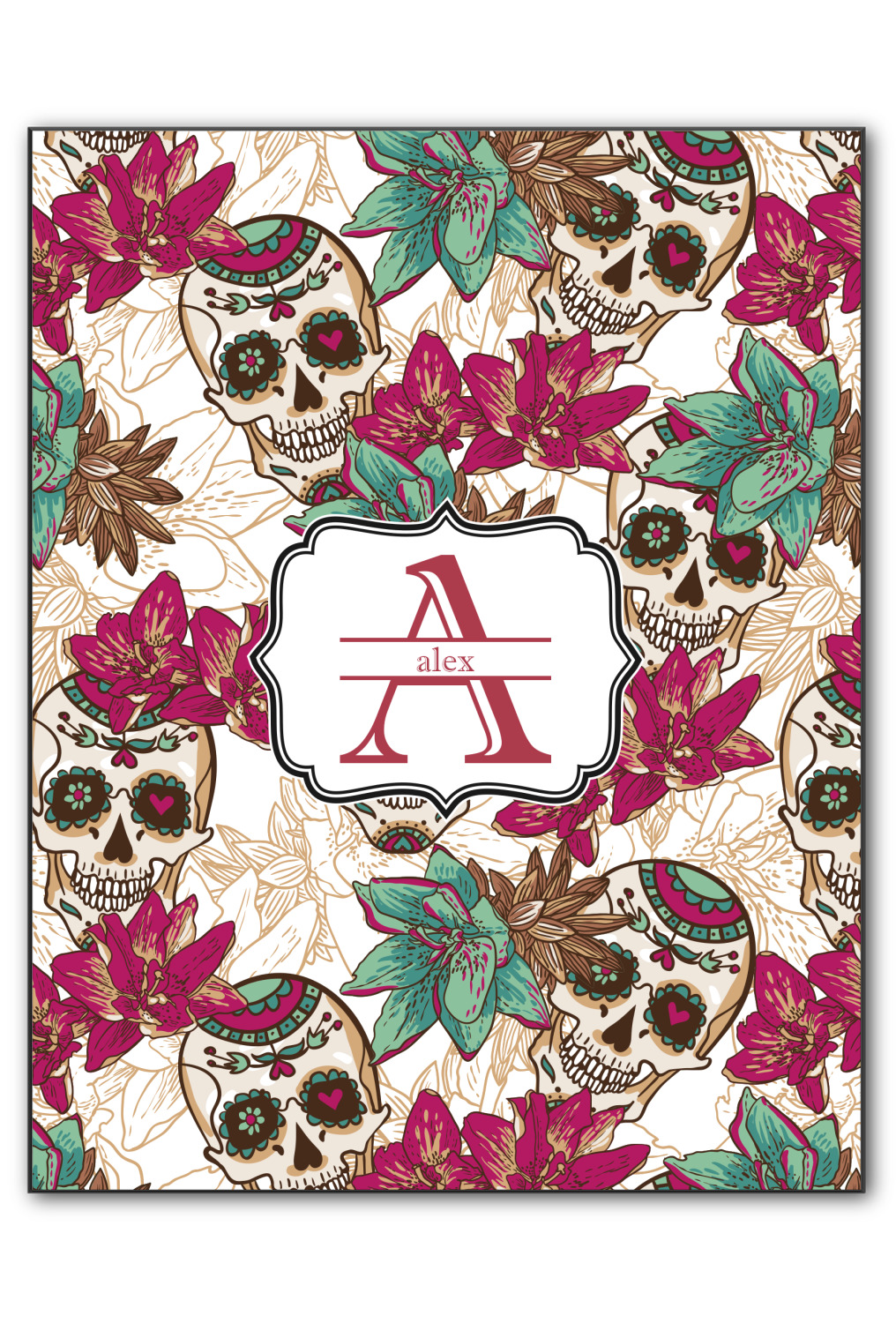 This design is full of sugar, spice, and everything nice, featuring the traditional Mexican Sugar Skulls. The calaveras, the official name of the sugar skulls, in this design are whimsical with flowers and hearts in the eye-sockets in lovely teal and magenta colors.