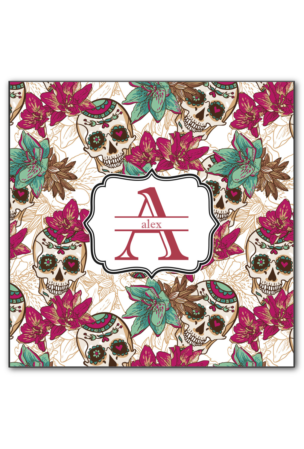 This design is full of sugar, spice, and everything nice, featuring the traditional Mexican Sugar Skulls. The calaveras, the official name of the sugar skulls, in this design are whimsical with flowers and hearts in the eye-sockets in lovely teal and magenta colors.