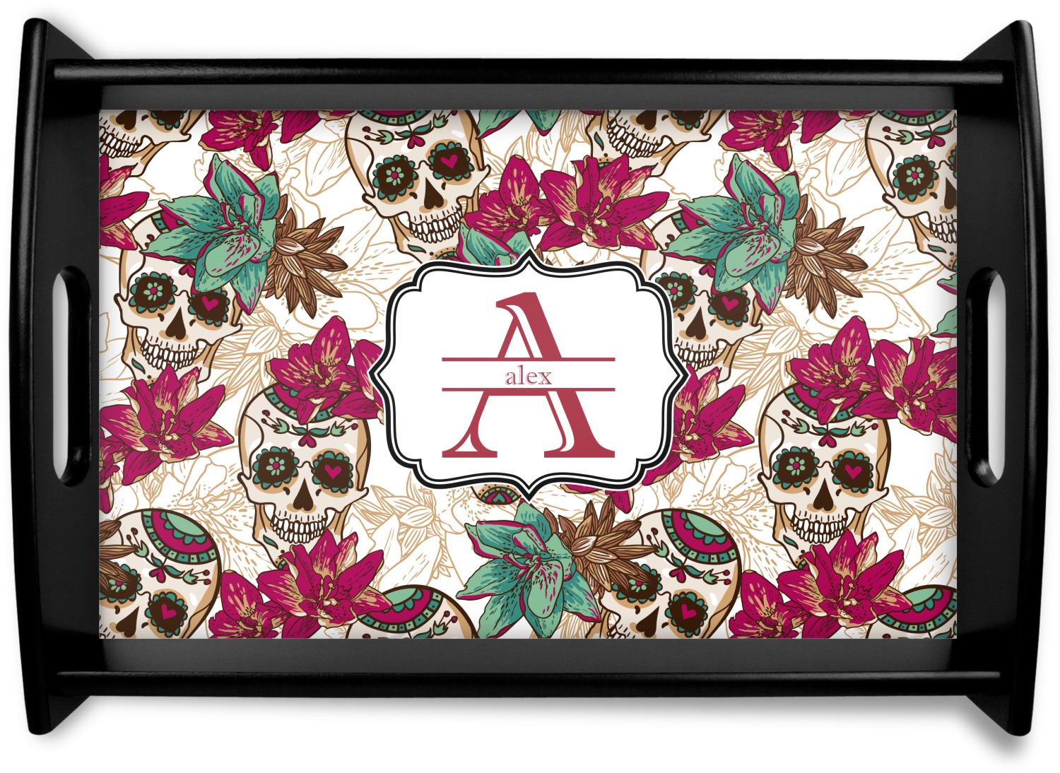 This serving tray with handles features square edges and two rounded sides, creating a very modern look. Each side is fabricated from a beautifully cut, natural wood. The bottom of the interior of the tray displays your customized design in bright, vibrant color. The tray is sold in both a black color and a natural wood look. Each variation of the wood serving tray has two sizes: Small, which is 14" x 10" x 2.25", and Large, which is 19.5" x 13.5" x 2.75".