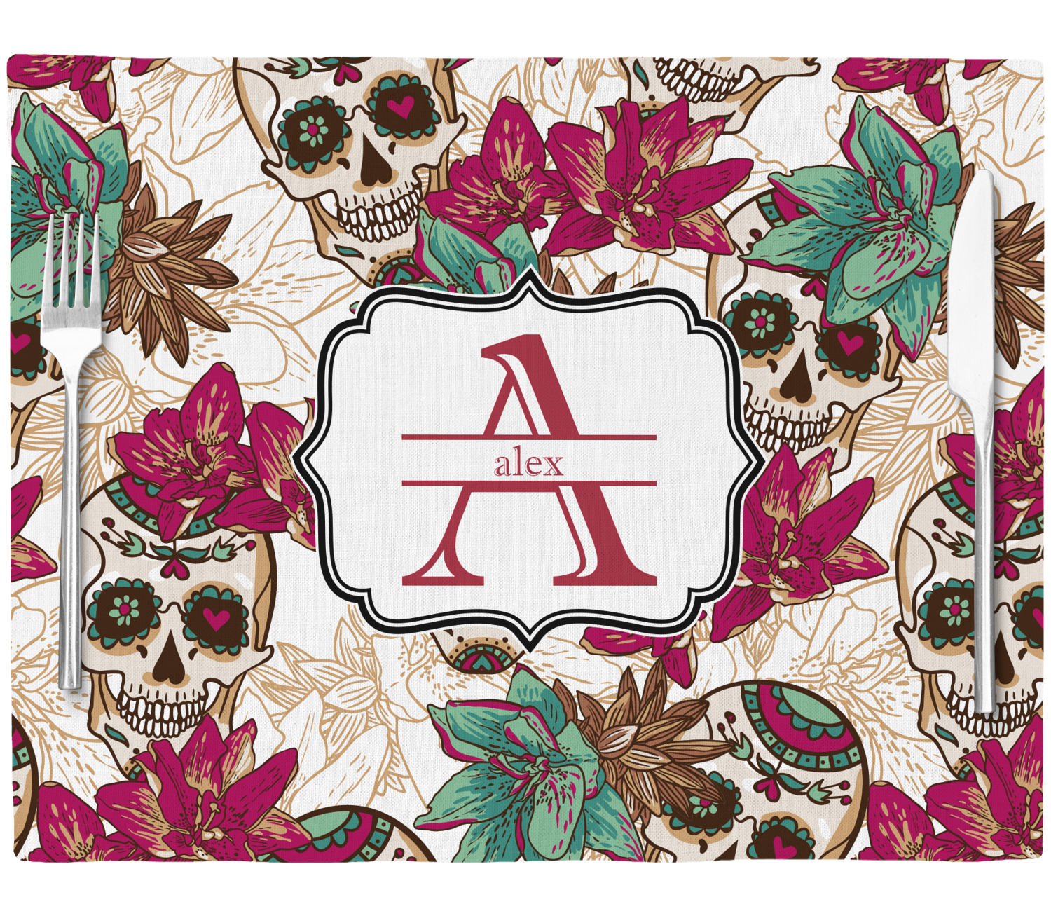 Each of our table mats are a poly twill material with woven burlap detailing. This creates a soft, quality placemat for us to fully print your personalized design across. The woven twill also adds a wrinkle-free surface to set your table! Each customizable placemat is a rectangle shape measuring at approximately 13 x 18 and printed here in the USA.