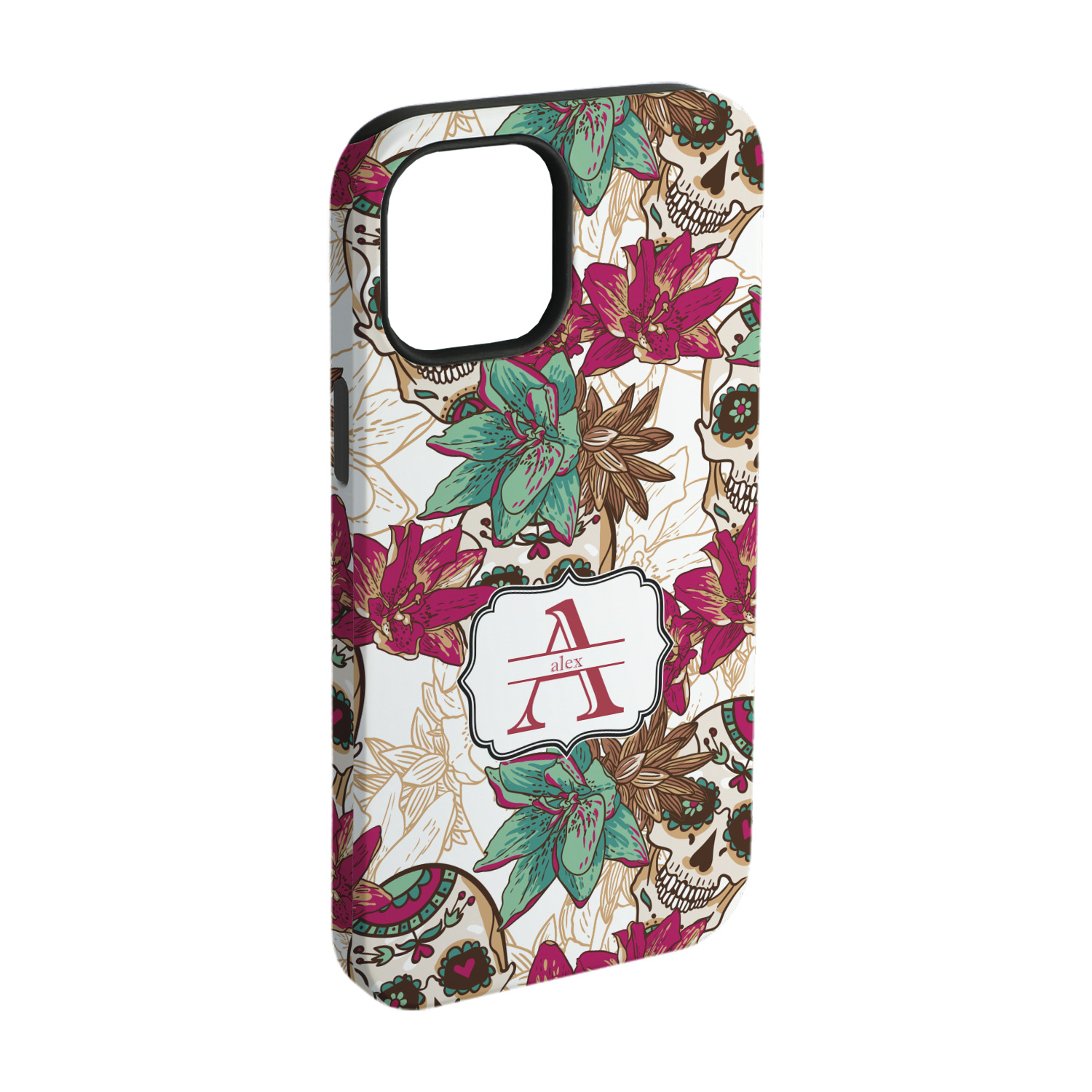 Amidst the flowers and smiling skulls, a label rests in the center, the perfect place for the personalization of your choice.