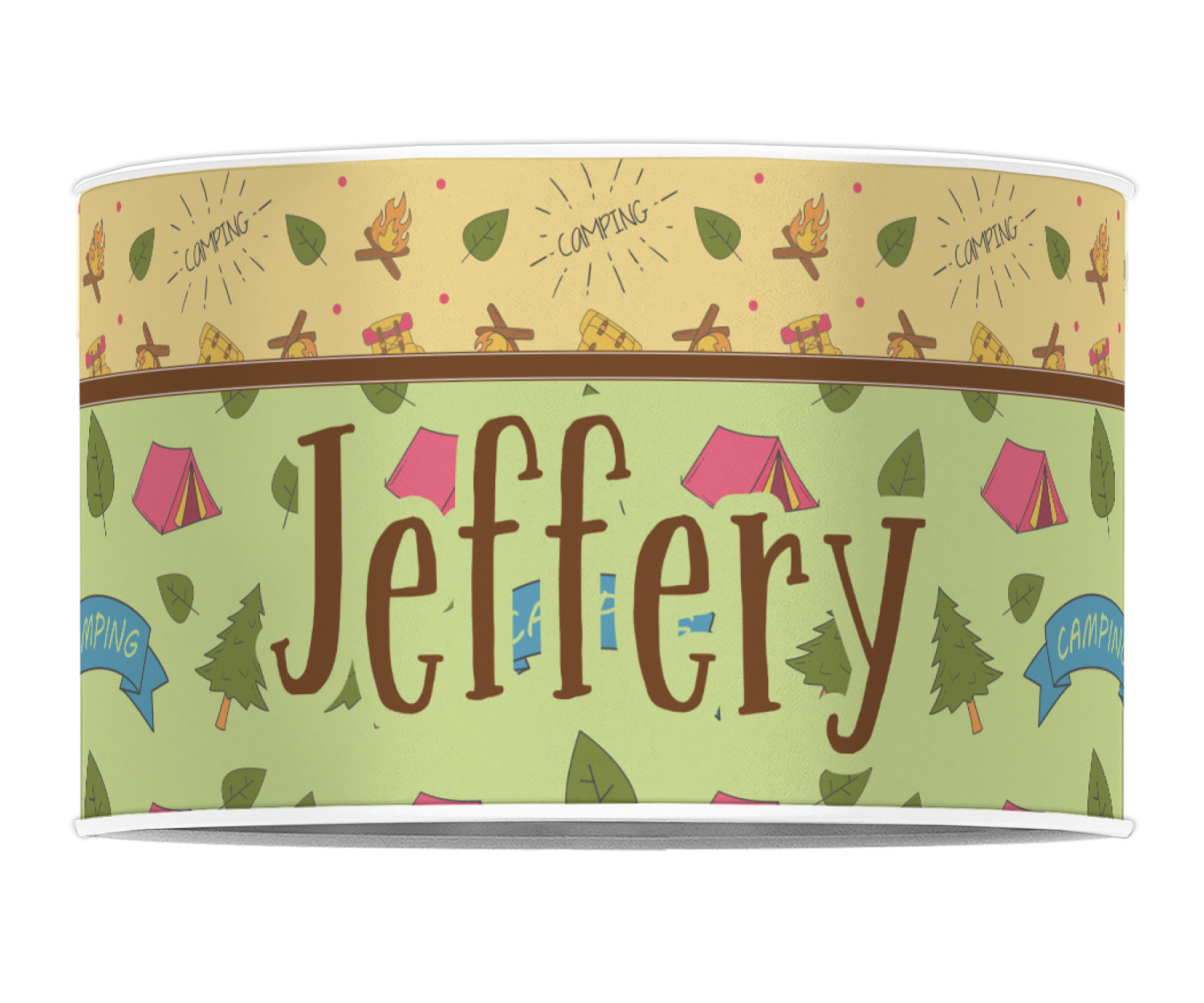 Your name or text fits on the space underneath the brown ribbon, on top of the green pattern. Both patterns have fun graphics that say the word "camping." Easily change the text to a saying or your own name. Take a peek at our camping graphics as well!