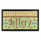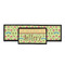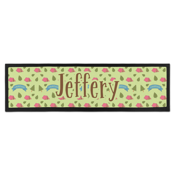 Your name or text fits on the space underneath the brown ribbon, on top of the green pattern. Both patterns have fun graphics that say the word "camping." Easily change the text to a saying or your own name. Take a peek at our camping graphics as well!