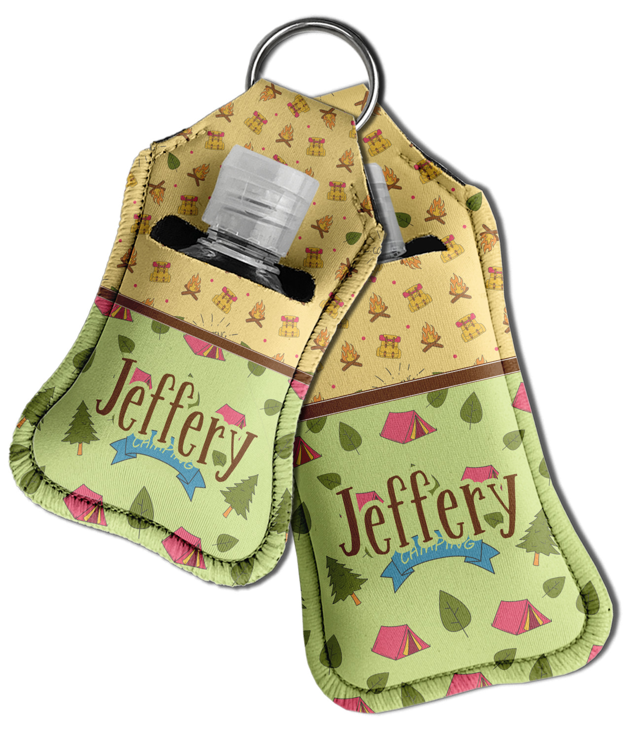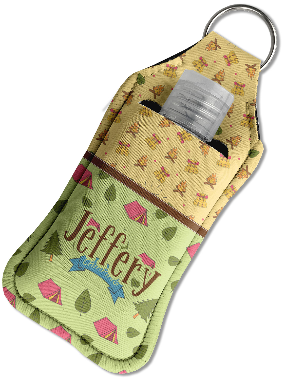 Each hand sanitizer holder comes with its own empty travel-sized, refillable hand sanitizer sure to fit snug in your customized sanitizer case! Our hand sanitizer cases are a durable, yet soft neoprene material sure to last any daily activities or travel agenda. Customize and personalize a hand sanitizer bottle holder with one of our two sizes - small (4.25" x 2.25") or large (5.5" x 2.5"). Each travel sanitizer holder comes with a keyring for attachment on bags, keys, or more!
