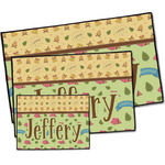 Your name or text fits on the space underneath the brown ribbon, on top of the green pattern. Both patterns have fun graphics that say the word "camping." Easily change the text to a saying or your own name. Take a peek at our camping graphics as well!