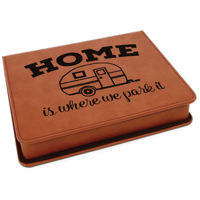 This set includes a wine stopper, pourer, drip ring, and a corkscrew! The exterior of the box is a gorgeous, cognac-brown leatherette, while the interior is covered in a black, velvety material. Four foam indentations, unique to the shape of the wine tool, are found at the bottom half of the box's interior. The tools fit snugly into each of their designated spots, and the foam material helps to protect the integrity of your tools. Each of the wine gadgets features a bamboo accent, with the location and style depending on the tool itself. We laser engrave your personalized design onto the lid of the box, which easily flips open and is secured closed by a small magnet. The wine accessories box measures at 7 by 5.5 inches in total.