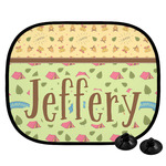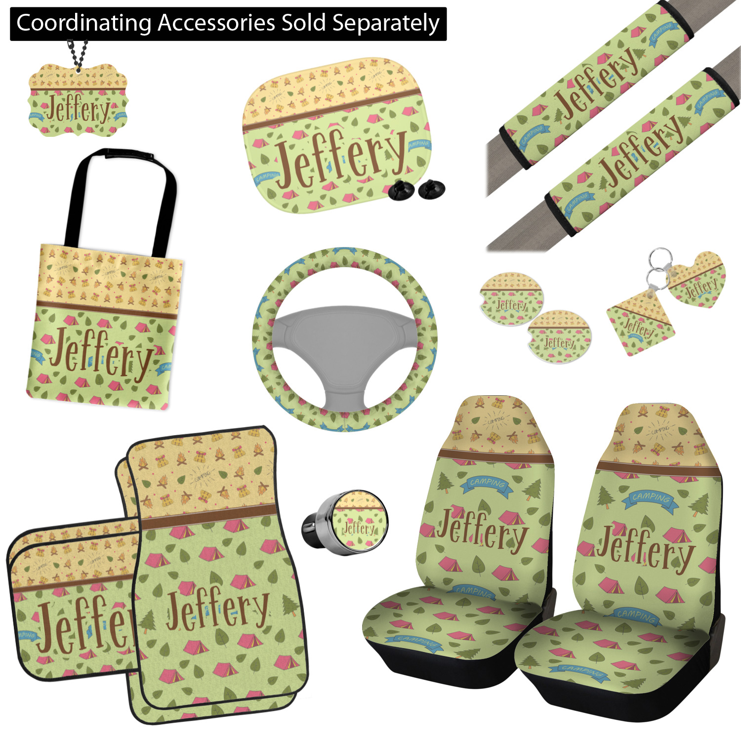 Your name or text fits on the space underneath the brown ribbon, on top of the green pattern. Both patterns have fun graphics that say the word "camping." Easily change the text to a saying or your own name. Take a peek at our camping graphics as well!