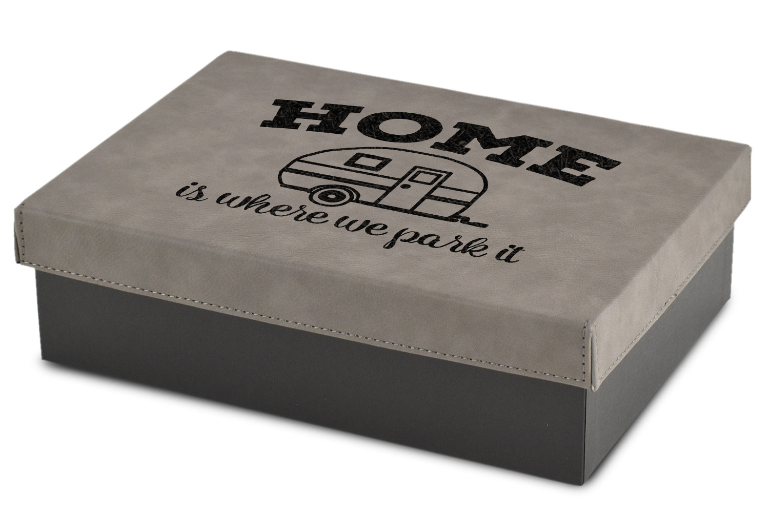 These gift boxes are available in 3 different sizes to accommodate various sized gifts. Available in gray as a neutral color for any occasion as well as to showcase your design boldly. Engraved with a laser this high quality paper board and faux leather gift box is unique and makes any gift stand out.