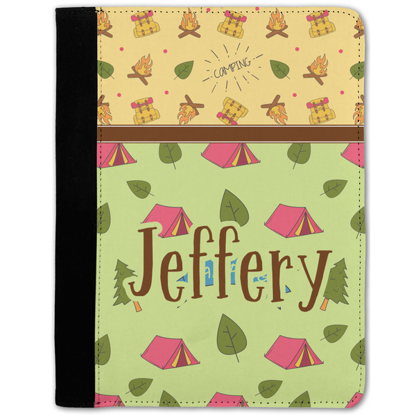 These personalized padfolios are made from a black, polyester microfiber and features a standard, 50-page notepad. However, these black padfolios can accommodate a pad with up to 100 pages. This model also features a slot pocket for any loose sheets of paper, small pockets for business cards, and an elastic band to secure a pen. We print your personalization across the front of this notepad portfolio in bright, vibrant color. These padfolios come in 2 sizes, Medium - approximately 10.25" x 8" for 5" x 8" paper and Large - approximately 12.5" x 8.5" for 8.5" x 11" paper.