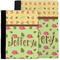 Your name or text fits on the space underneath the brown ribbon, on top of the green pattern. Both patterns have fun graphics that say the word "camping." Easily change the text to a saying or your own name. Take a peek at our camping graphics as well!