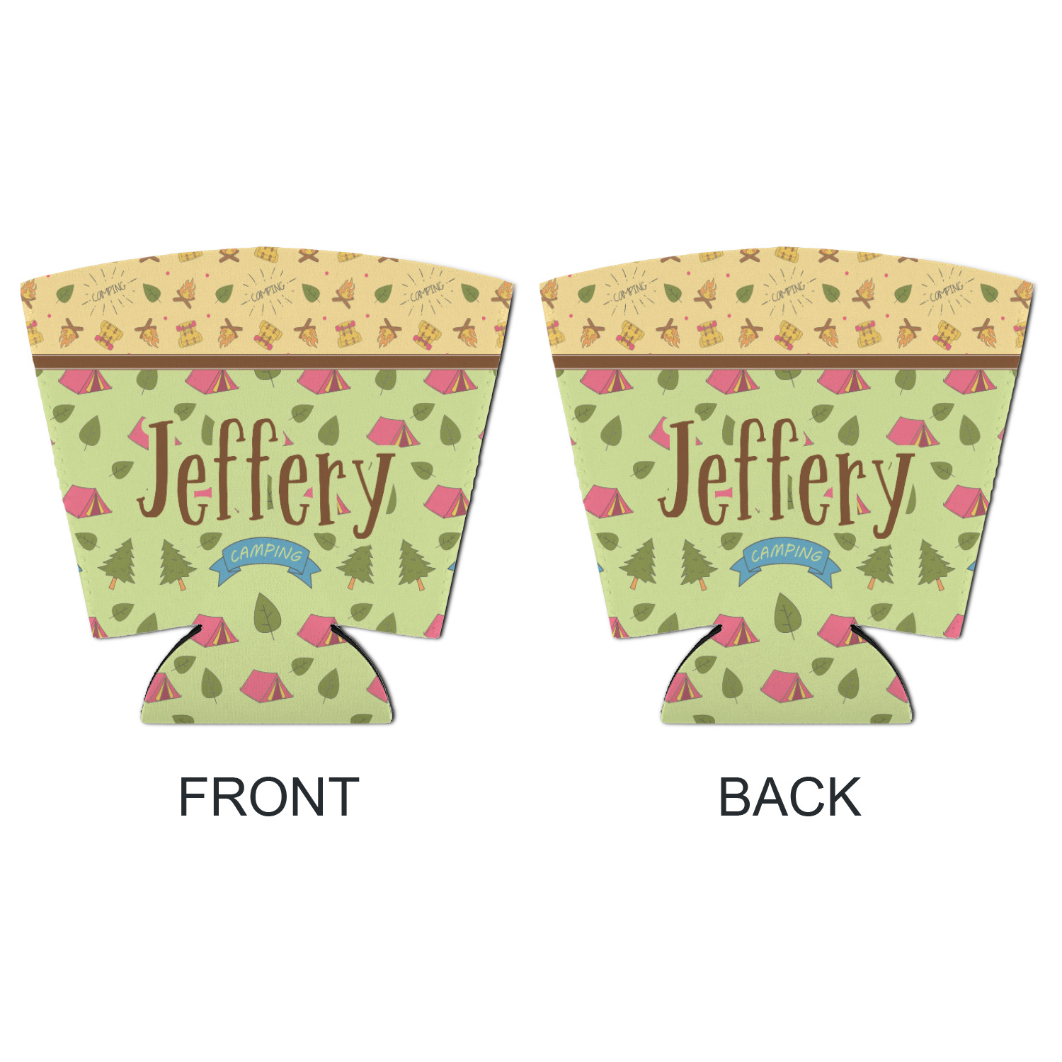 Your name or text fits on the space underneath the brown ribbon, on top of the green pattern. Both patterns have fun graphics that say the word "camping." Easily change the text to a saying or your own name. Take a peek at our camping graphics as well!
