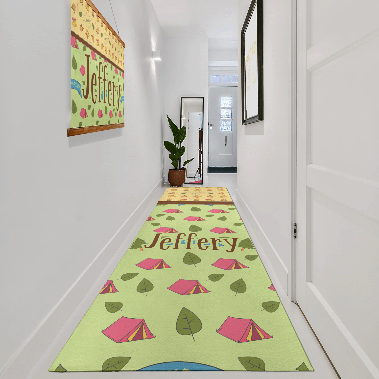 Our custom runner rugs and area rugsare both velvety soft and smooth, with a short pile, beautiful sewn corners and edges on the poly chenille face. We recommend adding an anti-slip mat under your runner rug to prevent it from sliding when under foot when placed on hard or smooth surfaces.