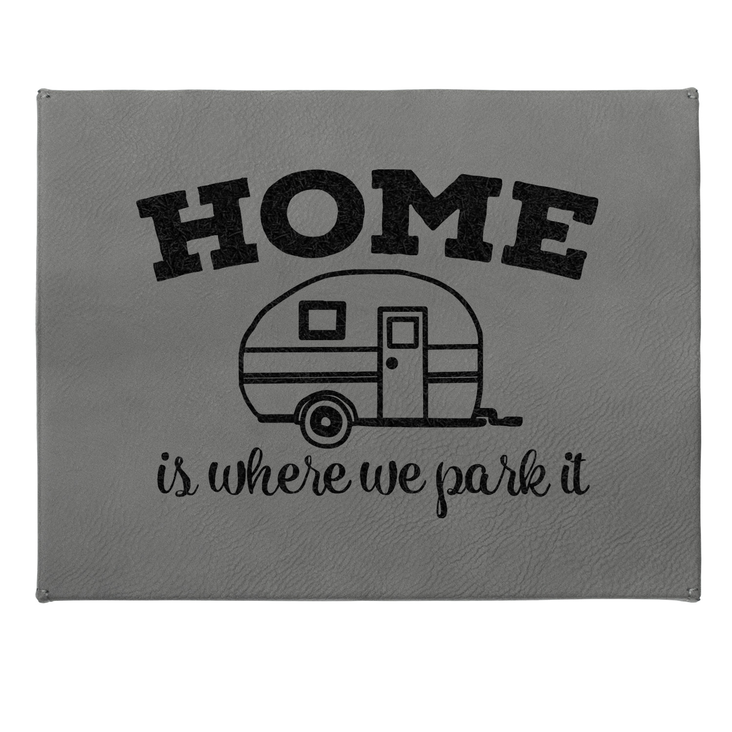 Your name or text fits on the space underneath the brown ribbon, on top of the green pattern. Both patterns have fun graphics that say the word "camping." Easily change the text to a saying or your own name. Take a peek at our camping graphics as well!