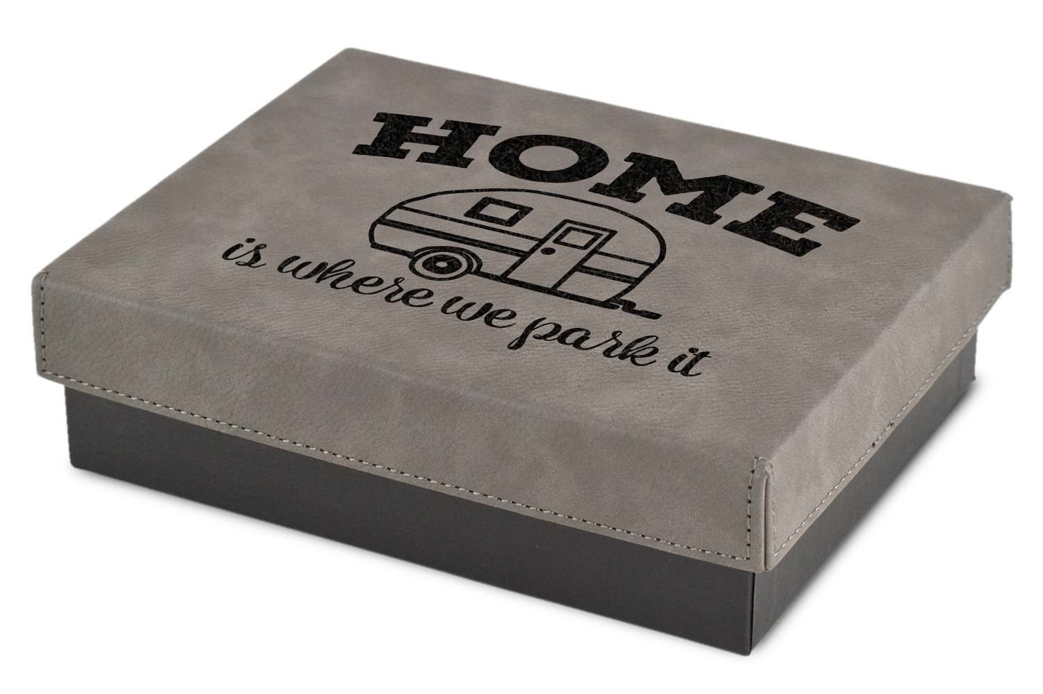These gift boxes are available in 3 different sizes to accommodate various sized gifts. Available in gray as a neutral color for any occasion as well as to showcase your design boldly. Engraved with a laser this high quality paper board and faux leather gift box is unique and makes any gift stand out.