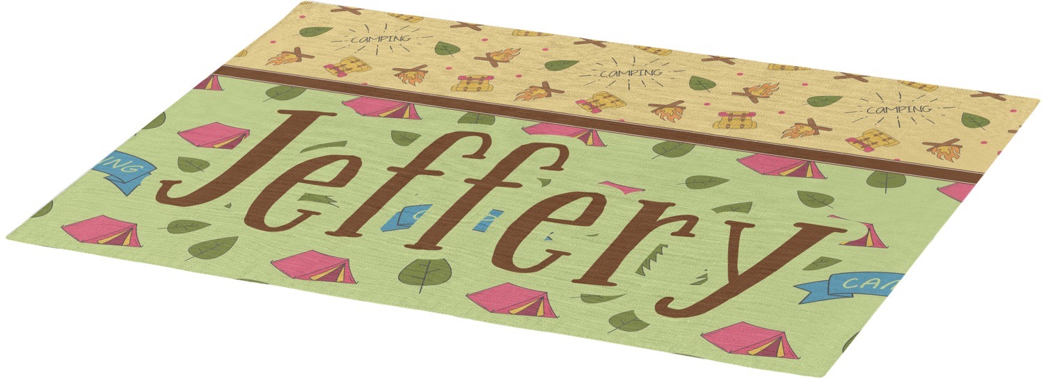 Each of our table mats are a poly twill material with woven burlap detailing. This creates a soft, quality placemat for us to fully print your personalized design across. The woven twill also adds a wrinkle-free surface to set your table! Each customizable placemat is a rectangle shape measuring at approximately 13 x 18 and printed here in the USA.