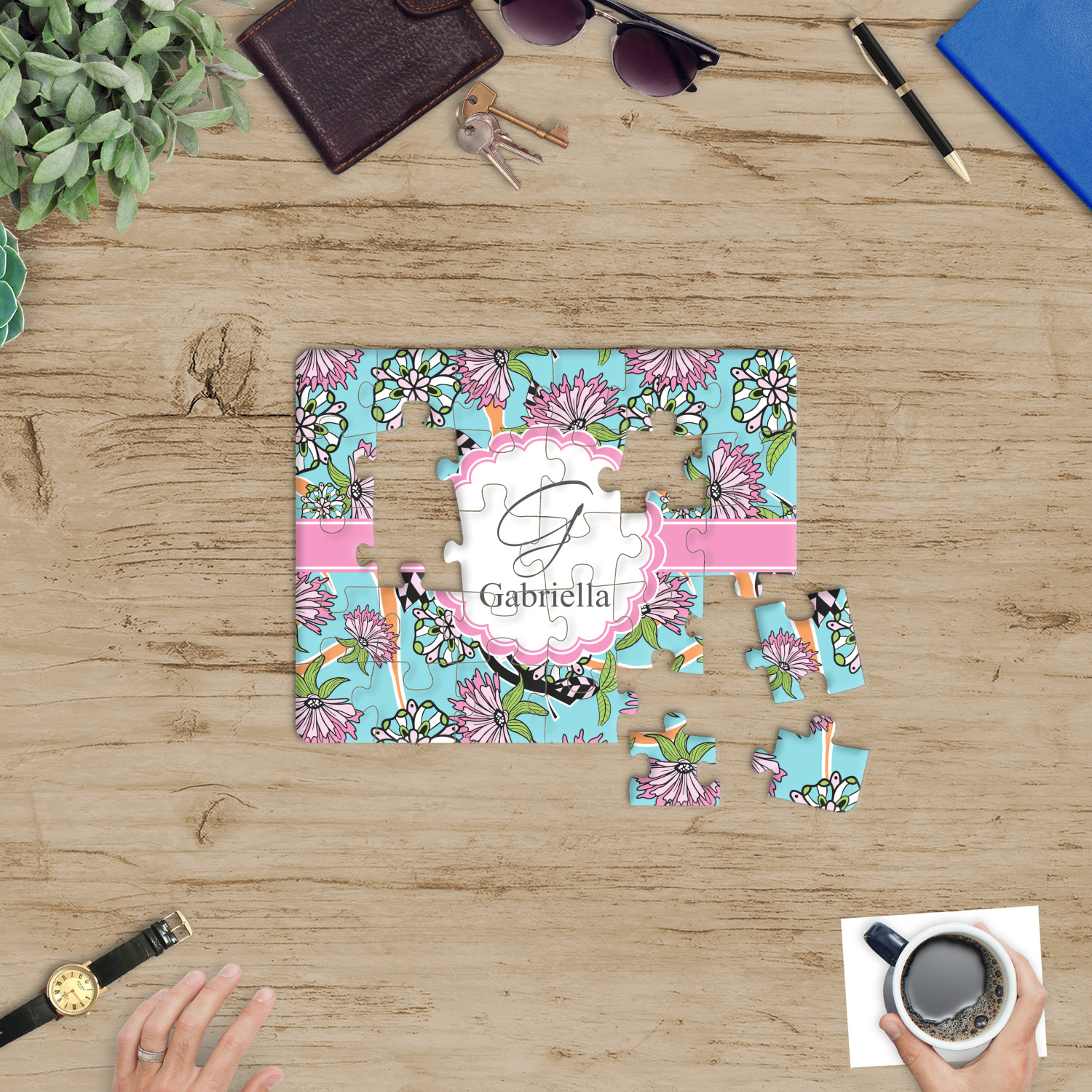 Depending on the look you are trying to achieve, you can add; a thematic pattern or background, with a photo in a frame and text or personalization to your puzzle. Basically if you can imagine it, you can design it!