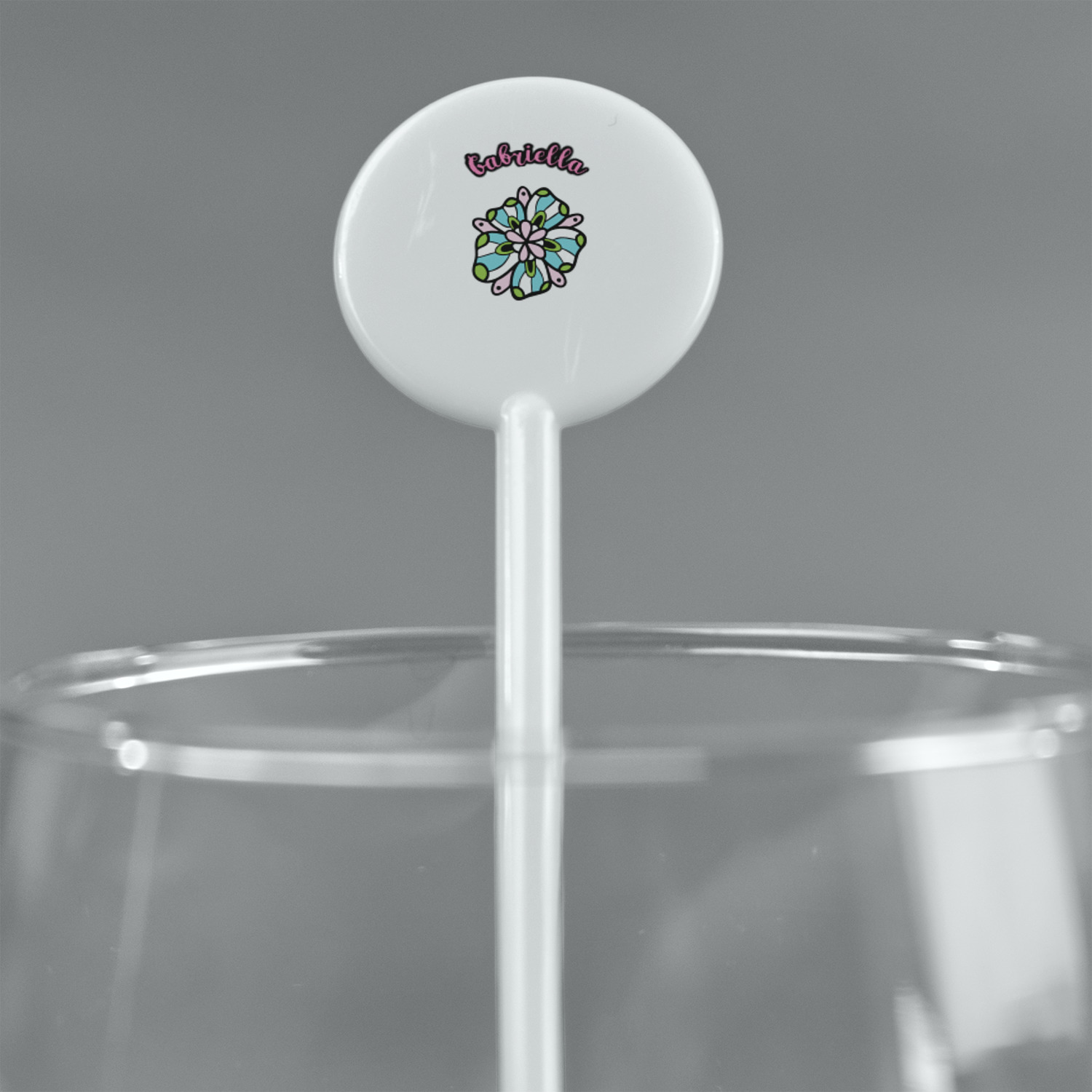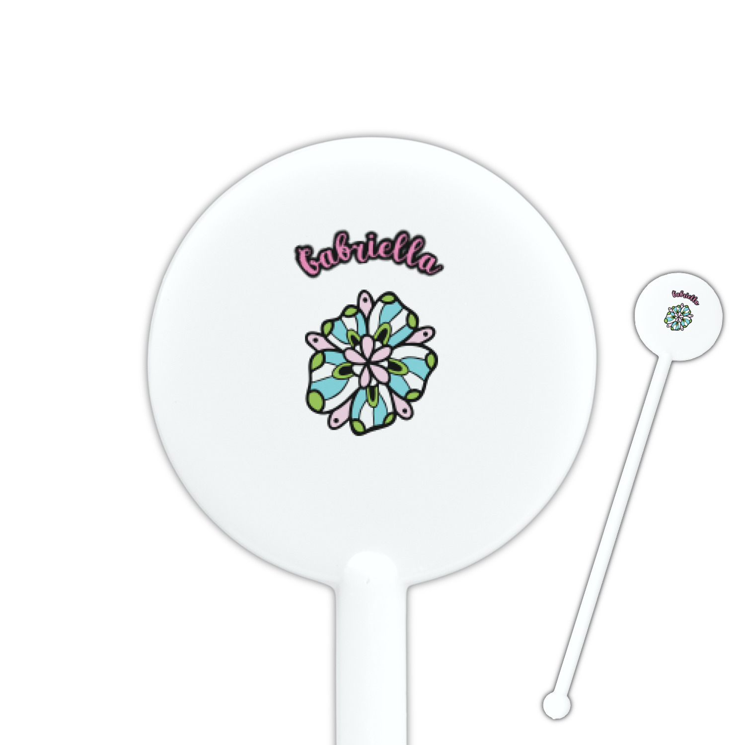 The flowers in this design are colored in two different shades of pink, lime green, and sky blue and are trimmed in black to make them pop out up against a sky blue background. The design has a classic ribbon in light pink trimmed in white. The decorative scalloped label is in white and trimmed in the light pink and white. Add an initial and a name for that personal touch to pull the entire design together.