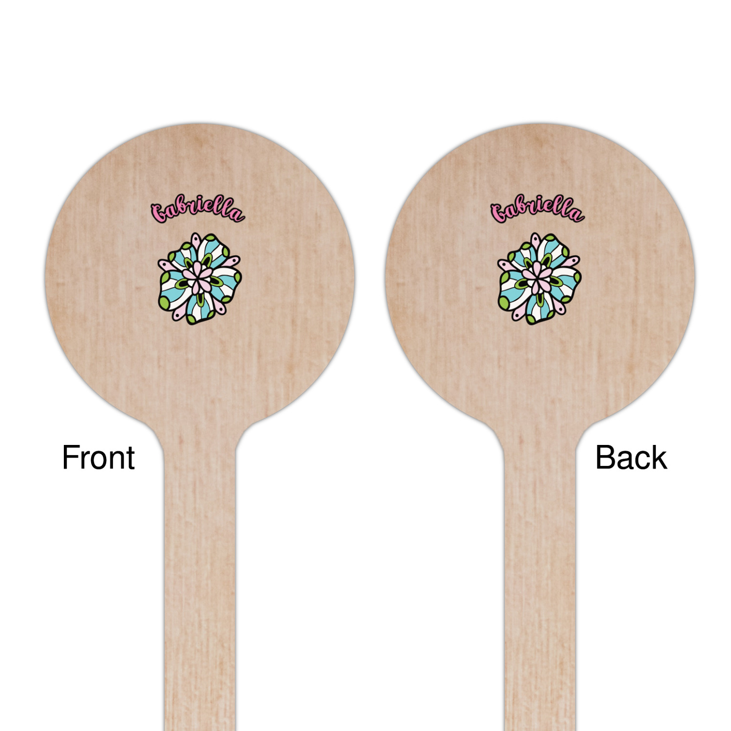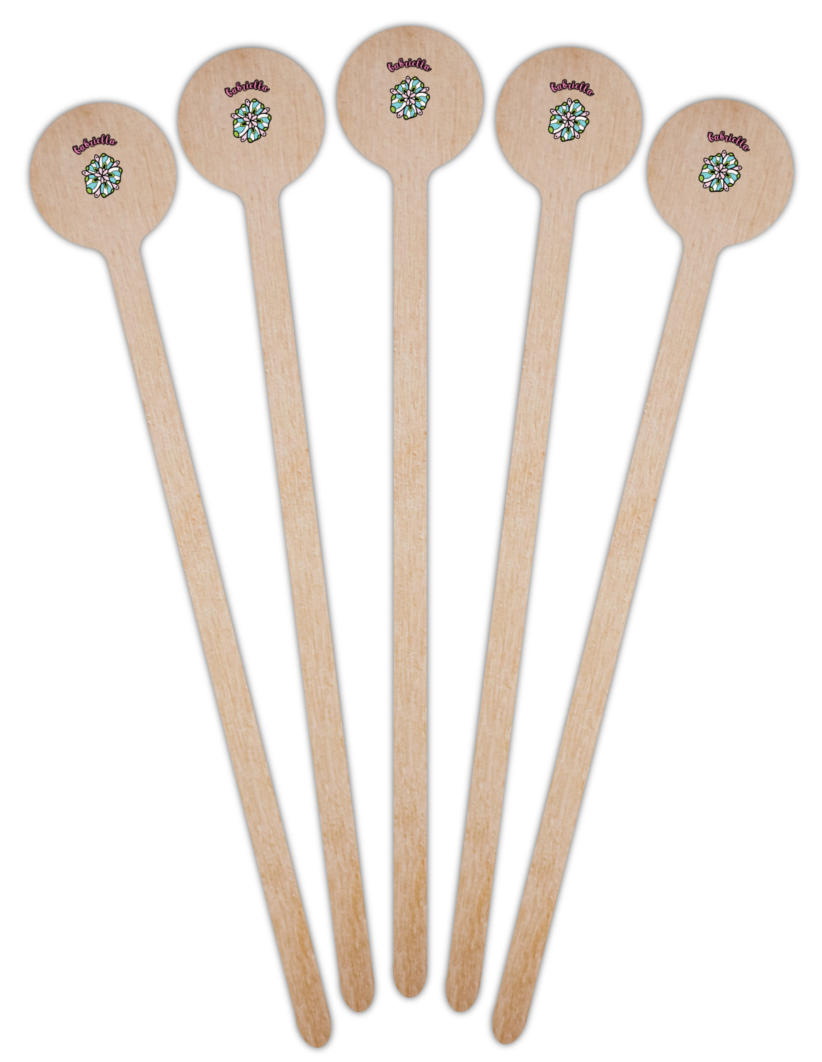 The flowers in this design are colored in two different shades of pink, lime green, and sky blue and are trimmed in black to make them pop out up against a sky blue background. The design has a classic ribbon in light pink trimmed in white. The decorative scalloped label is in white and trimmed in the light pink and white. Add an initial and a name for that personal touch to pull the entire design together.