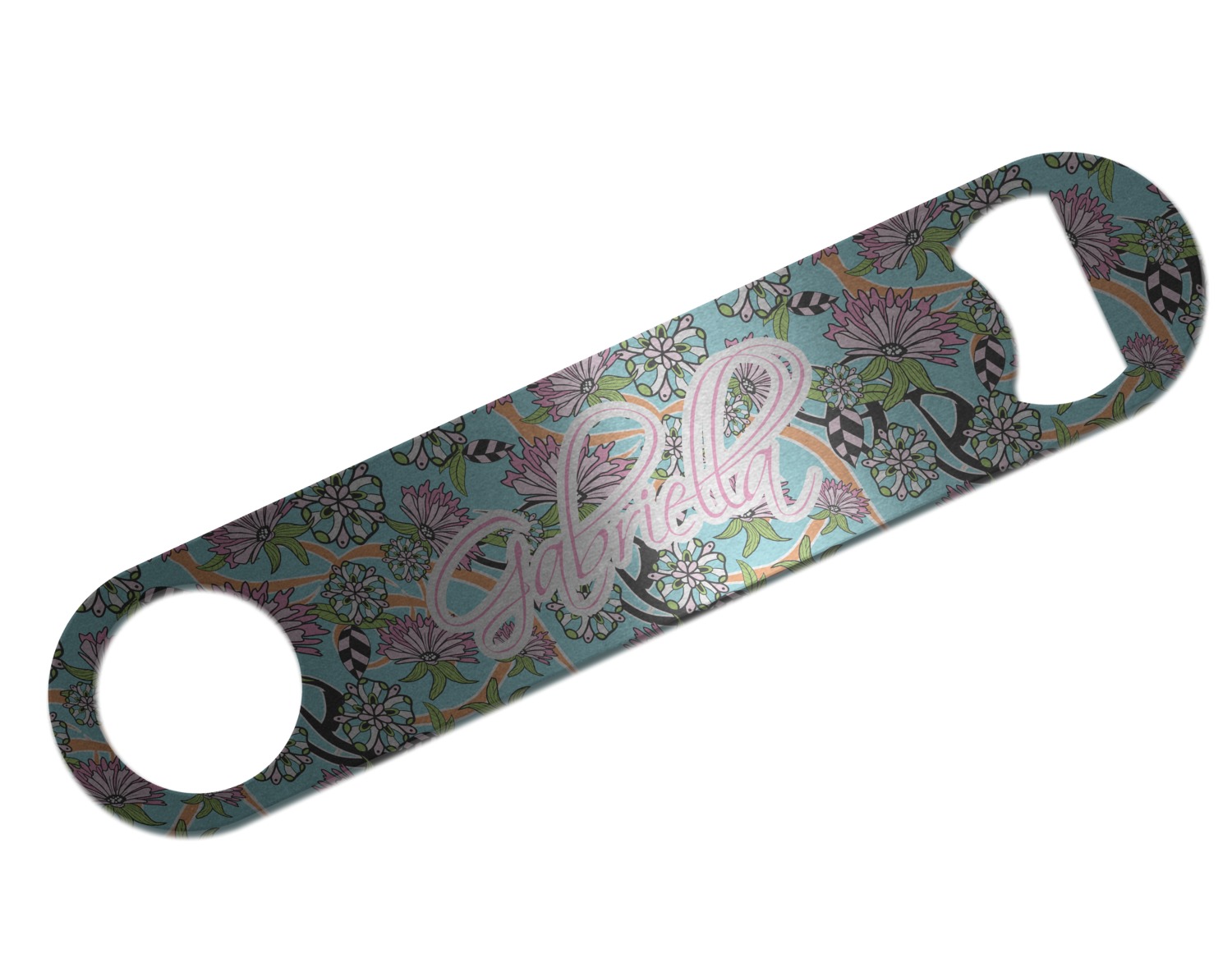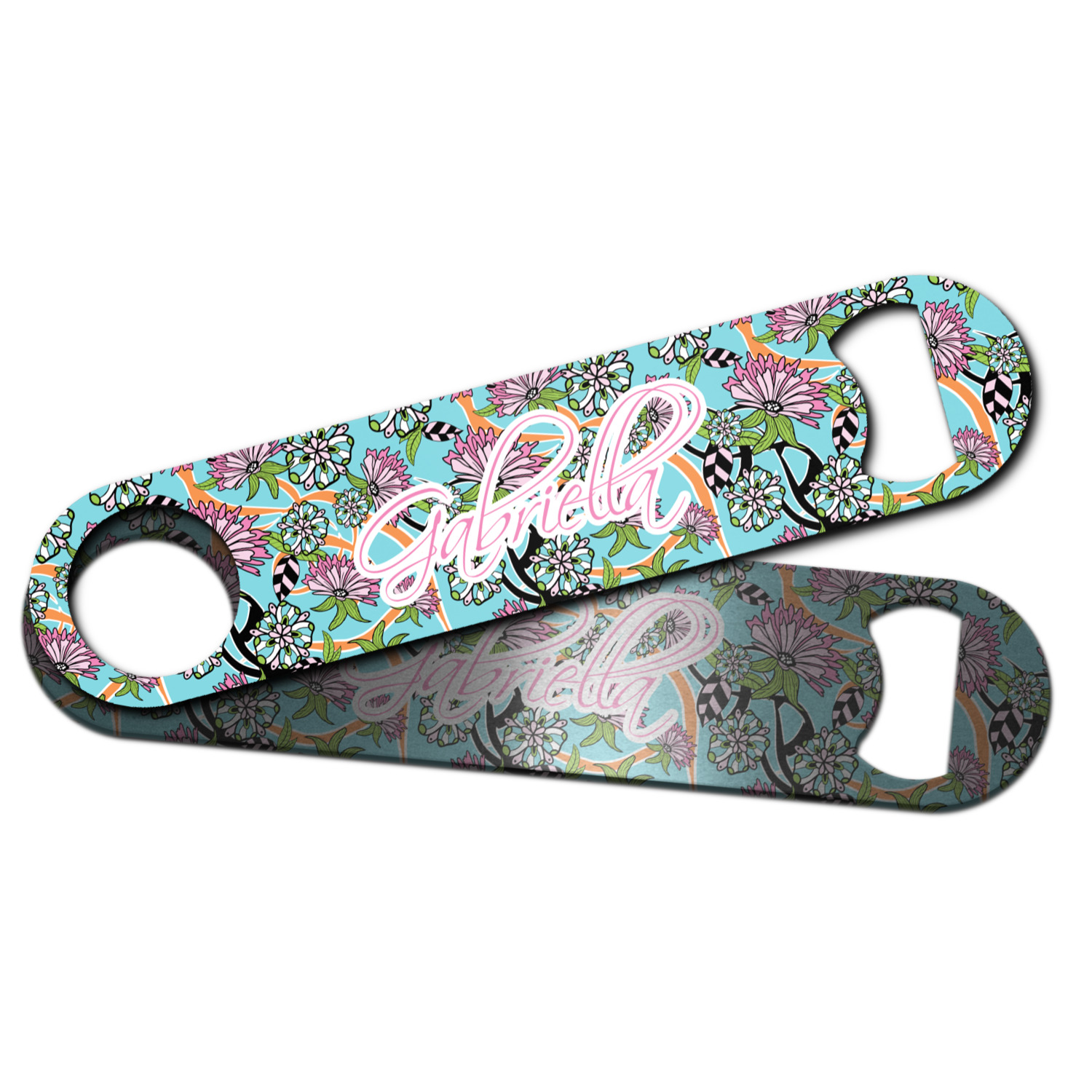 Stop struggling with the caps or your bottled beverages by purchasing one of our personalized bottle openers! These wrench-like custom bar blades are built to last. Customize one for your home's bar, or as a practical gift for a loved one!