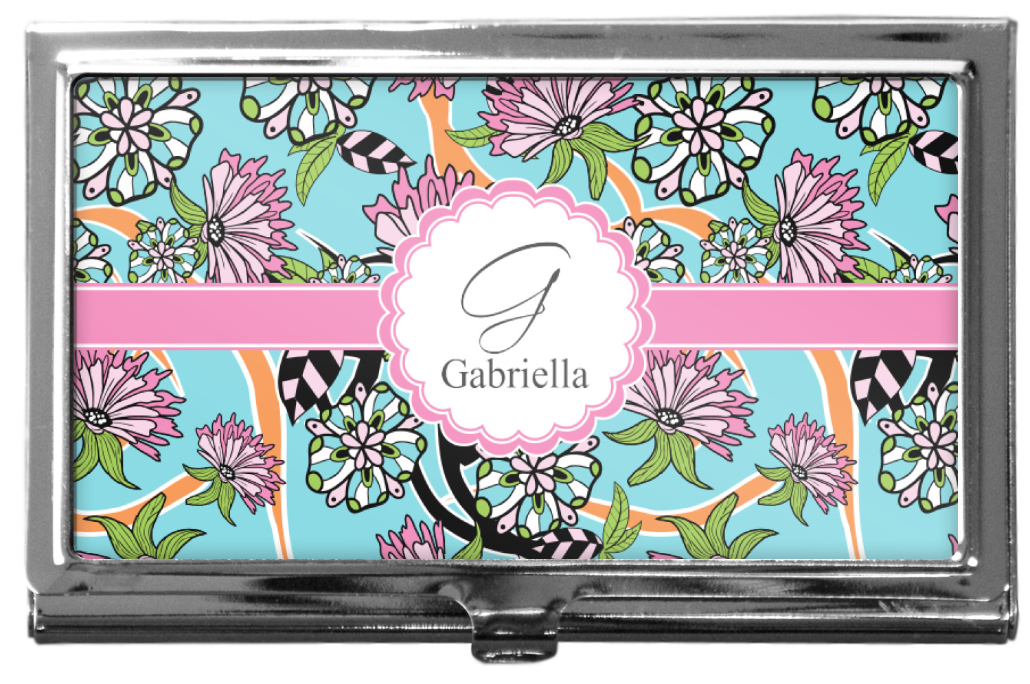 Our personalized business card holders are built from a robust, stainless steel and shaped into a sleek rectangle. At 3.75" x 2.5", and 0.25" thick, this nifty accessory holds up to 12 to 15 business cards, depending on the thickness of the cards themselves. Regardless, the skinny style makes it the perfect fit for your purse or pocket. The lid of your custom business card holder features a protruding tab to open and close your holder with a snap. To protect the mint condition of your cards, the interior of this metal business card holder is lined with a soft, felt fabric. We print your personalized design across the face of the lid.
