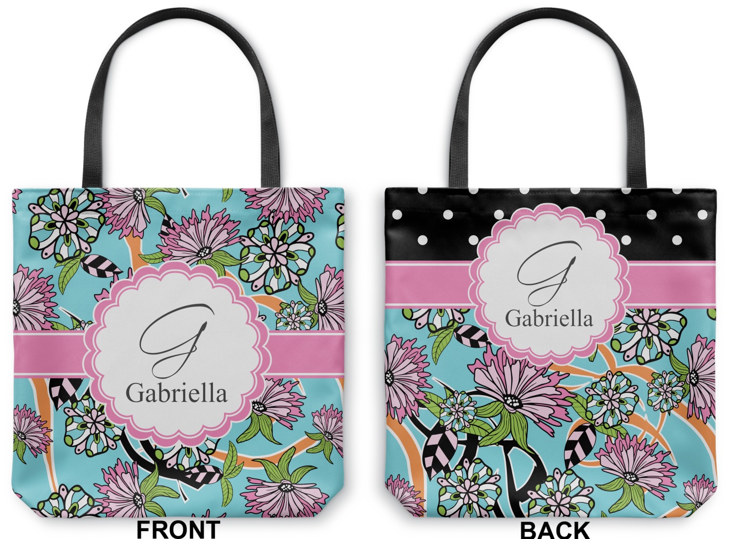 Our all purpose Canvas Totes bags are available in 3 sizes and in hundreds of different designs with many different prints & patterns, which are available in many different colors. You can customize the labels, the ribbons, the personalization styles and of course the fonts.