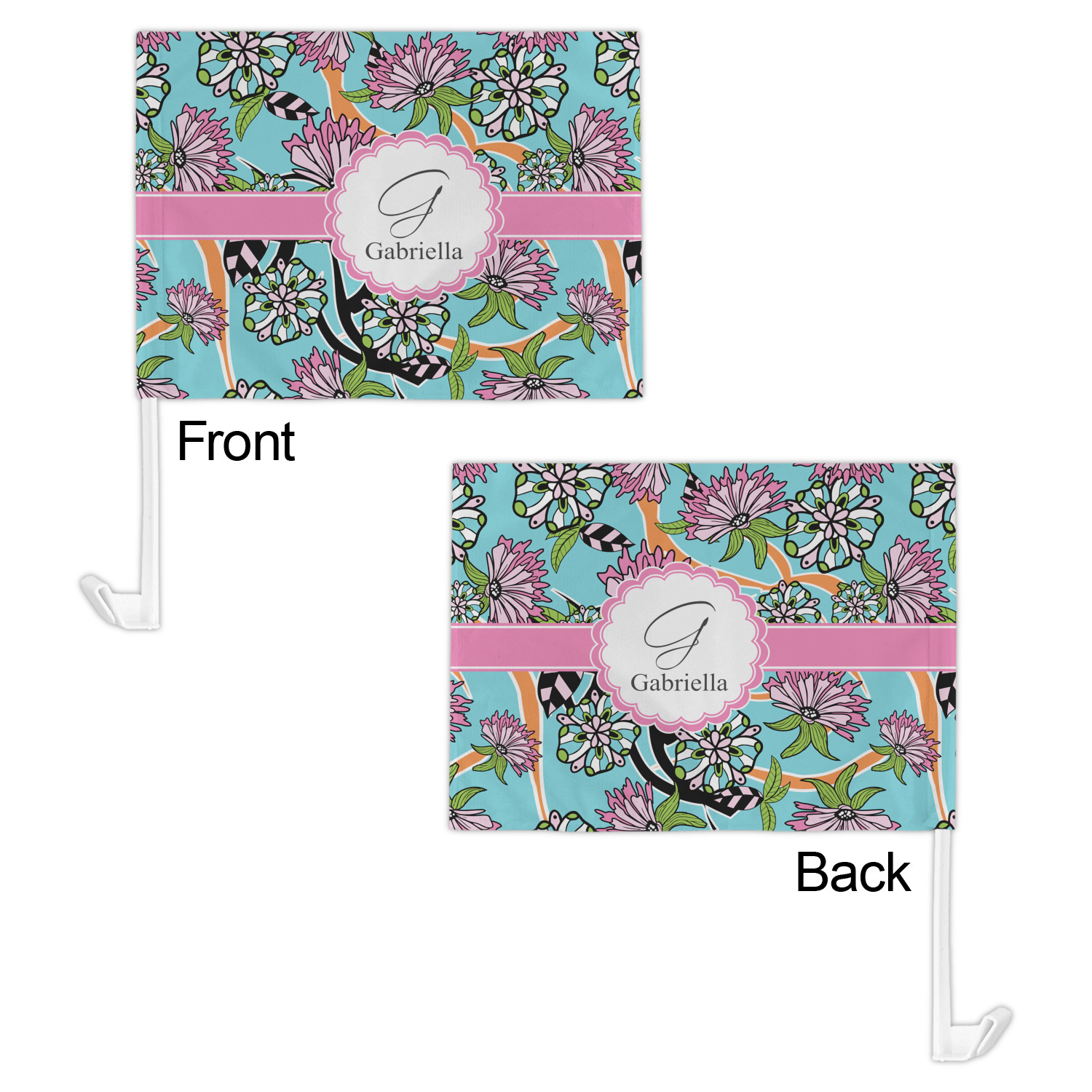 Our personalized flags are made from a durable, yet lightweight cloth that will proudly bear your logo or design of choice, while withstanding the outside elements. We have two size options - 8" x 11" and 11" x 15". Both come with a flag pole which includes a clip that secures the pole to the side window, whether it is rolled up or down. The flags are printed on both sides to display your design from all directions.